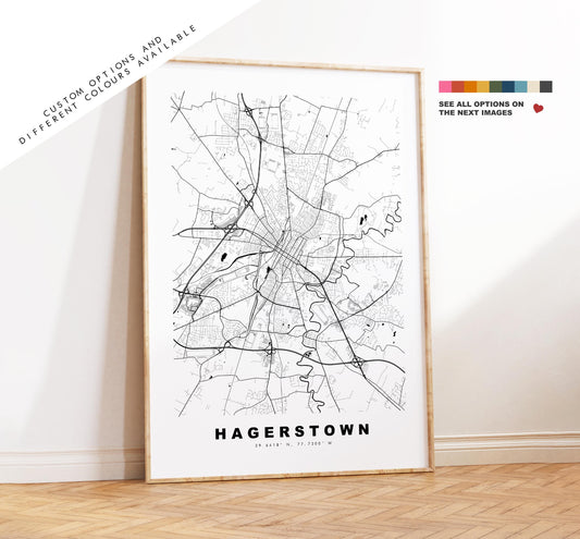 Hagerstown Map Print - City Map Poster - Map Art - USA City Maps - Hagerstown Print - Hagerstown Poster - Minimalist City Map - Maryland