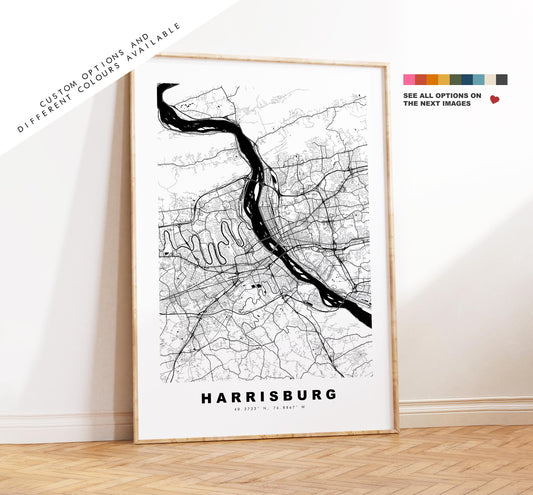 Harrisburg Map Print - City Map Poster - Map Art - USA City Maps - Harrisburg Print - Harrisburg Poster - Minimalist City Map - Pennsylvania