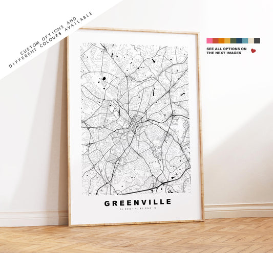 Greenville Map Print (SC) - City Map Poster - Map Art - USA City Maps - Greenville Print - Poster - Minimalist City Map - South Carolina