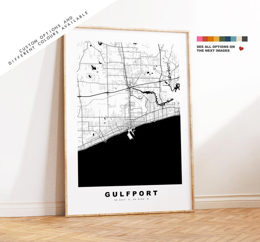 Gulfport Map Print - City Map Poster - Map Art - USA City Maps - Gulfport Print - Gulfport Poster - Minimalist City Map - Mississippi