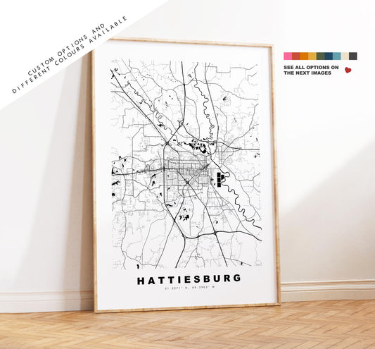 Hattiesburg Map Print - City Map Poster - Map Art - USA City Maps - Hattiesburg Print - Poster - Minimalist City Map - Mississippi