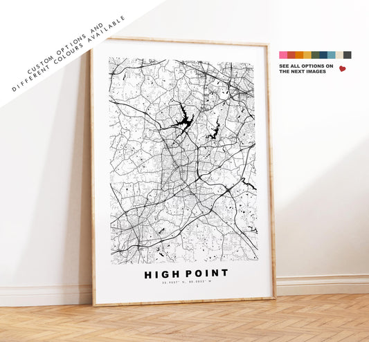 High Point Map Print - City Map Poster - Map Art - USA City Maps - High Point Print - Poster - Minimalist City Map - North Carolina