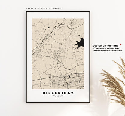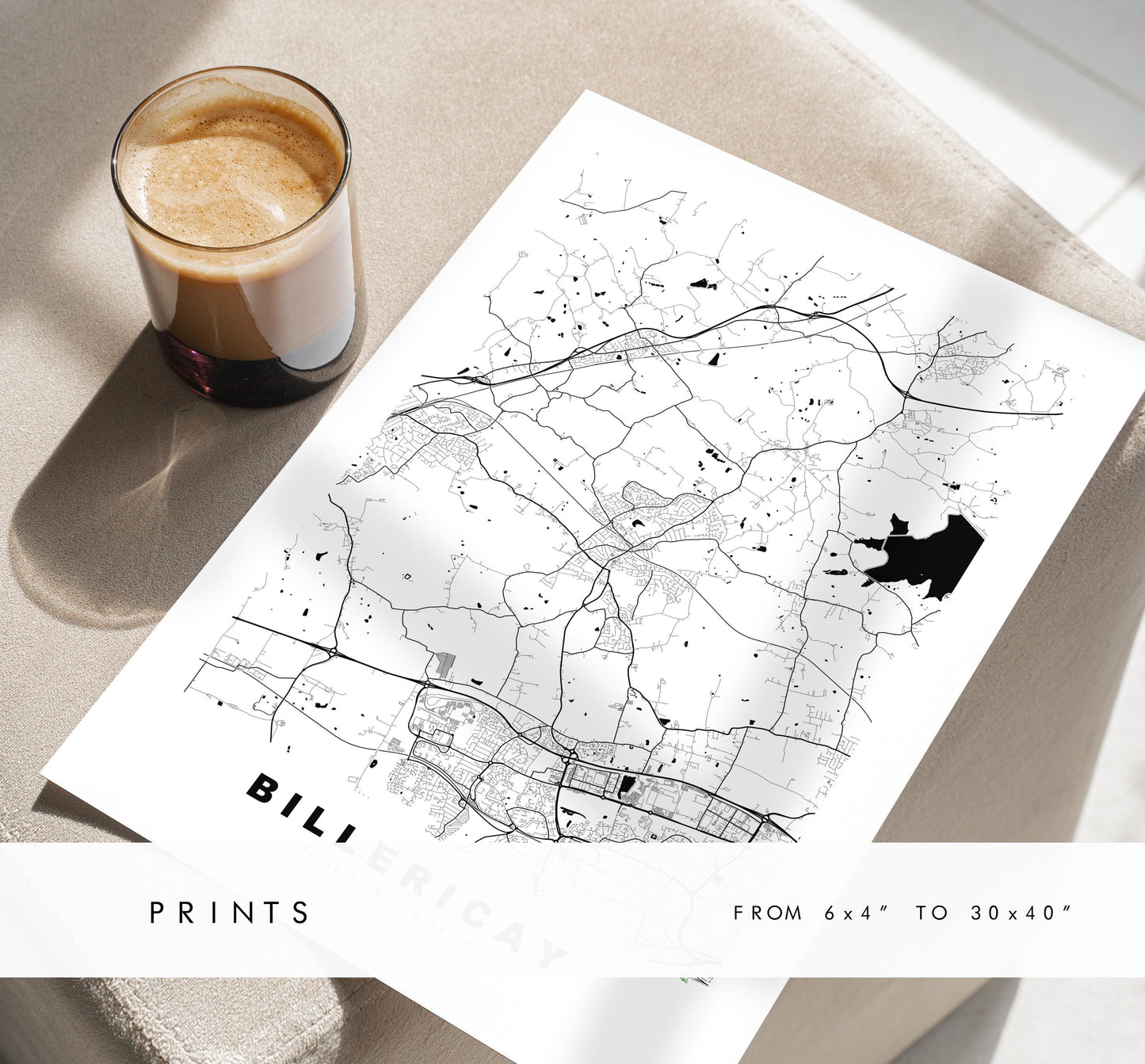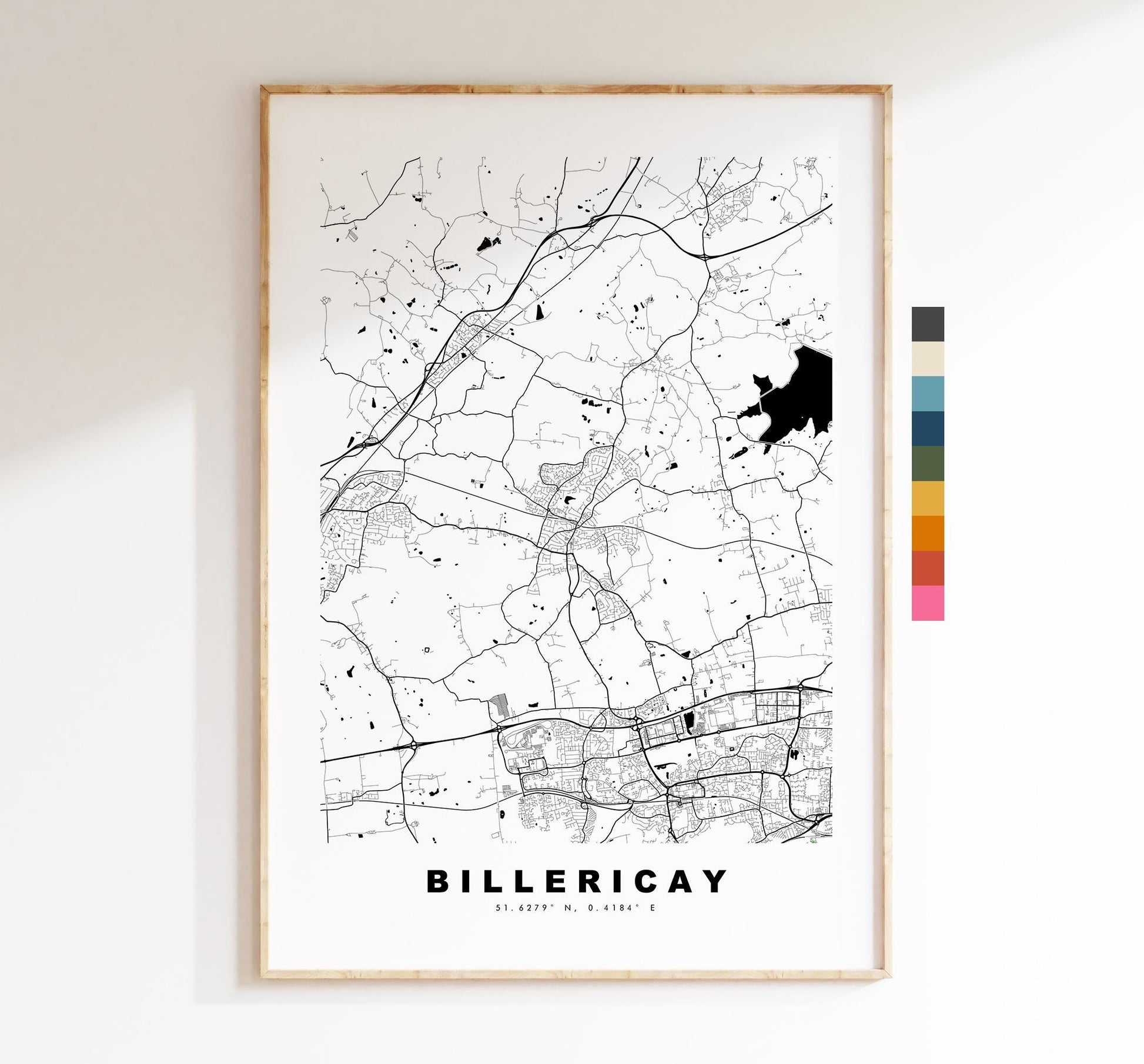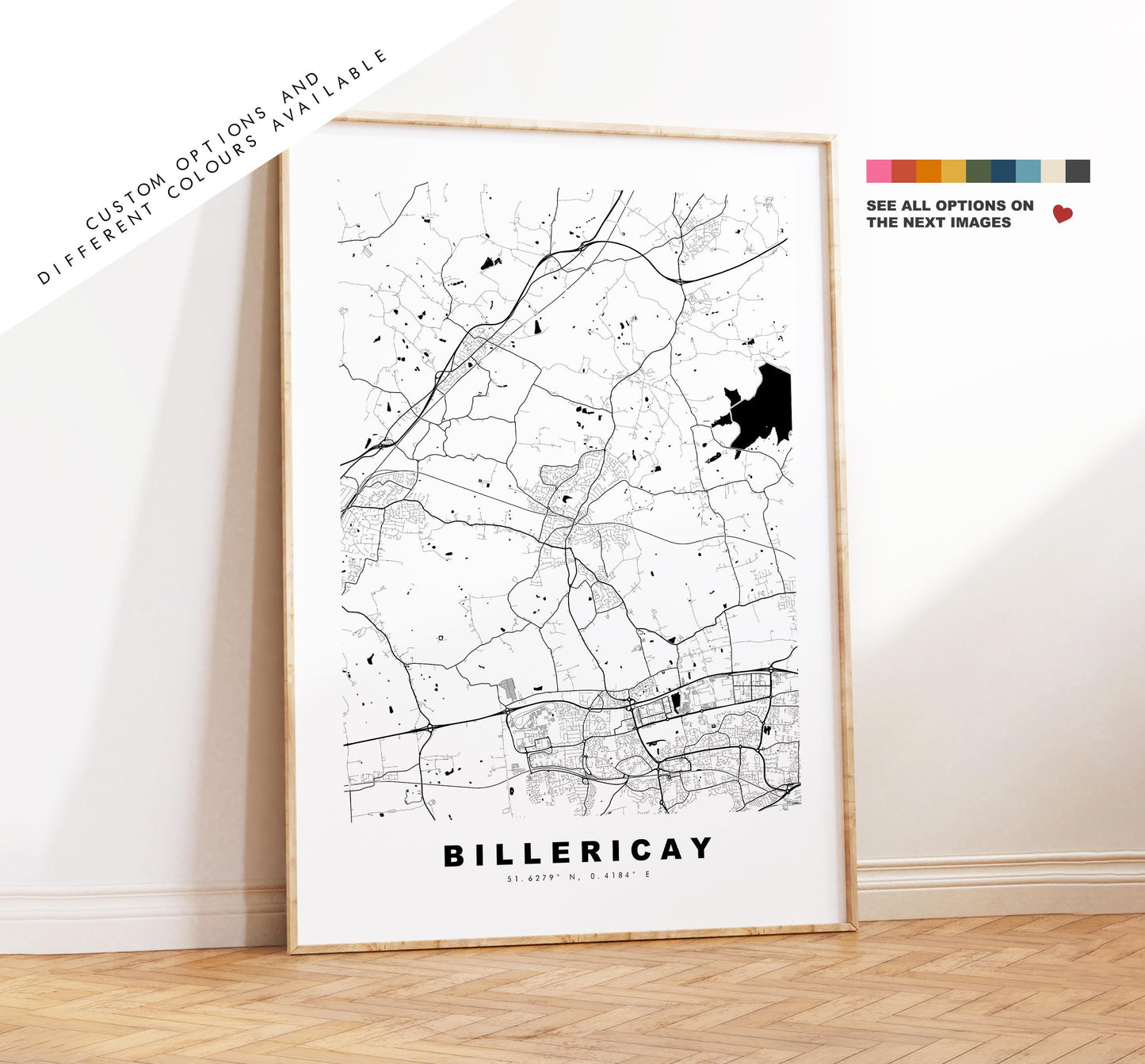 Billericay Map Print - Minimalist City Map Poster - Map Art - UK - Billericay Print - Billericay, Essex - Different Colours Available