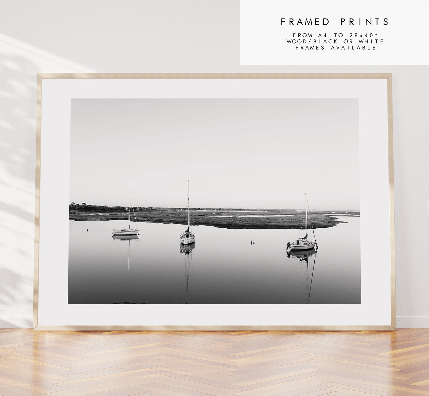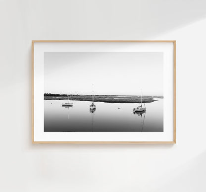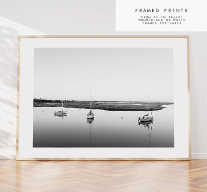 Boat Reflections Black and White Photography Print - Hampshire Photography Prints - Wall Art - Frame and Canvas Options - Landscape - UK