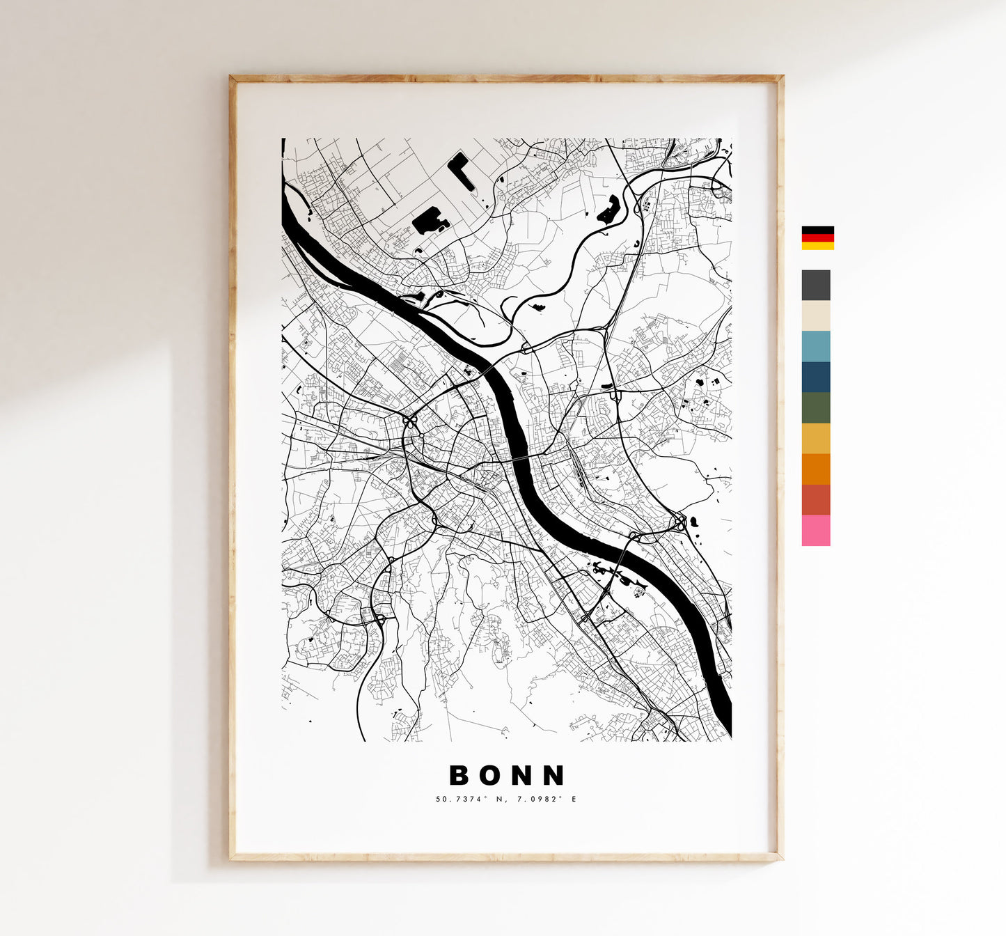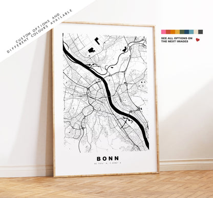 Bonn Map Print - City Map Poster - Map Wall Art - Germany City Maps - Bonn Print - Bonn Poster - Minimalist City Map - Germany