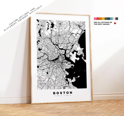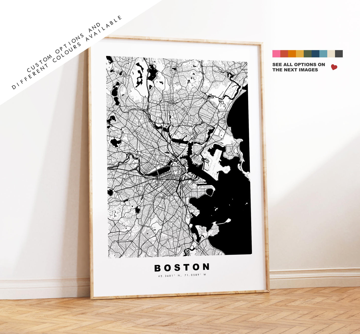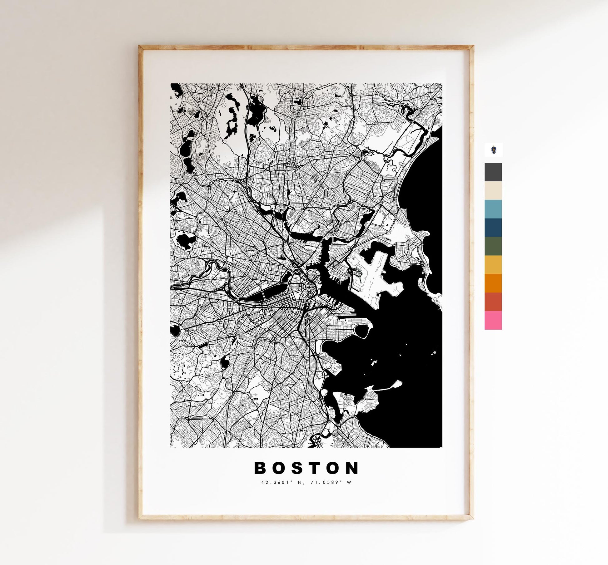 Boston Map Print - City Map Poster - Map Art - USA City Maps - Boston Print - Boston Poster - Minimalist City Map - Massachusetts