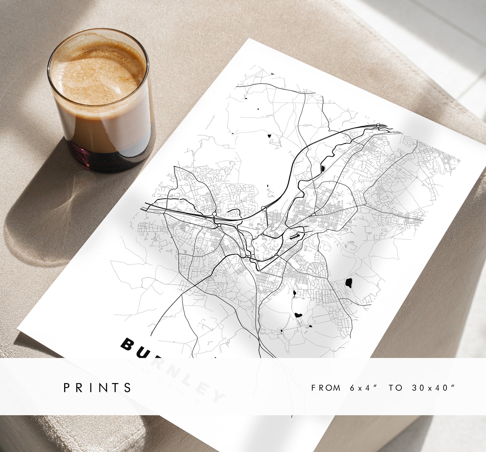 Burnley Map Print - Minimalist City Map Poster - Map Wall Art - UK - Burnley Print - Burnley Poster - Different Colours Available