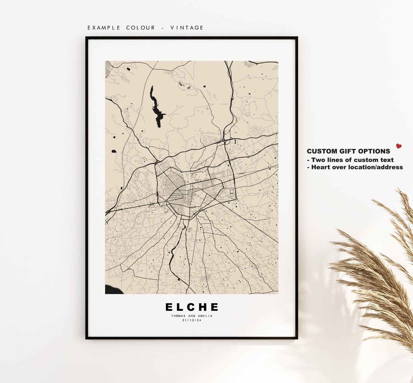 You can personalise this print by adding up to two lines of custom text beneath the city title, or by adding a heart over a location or address.