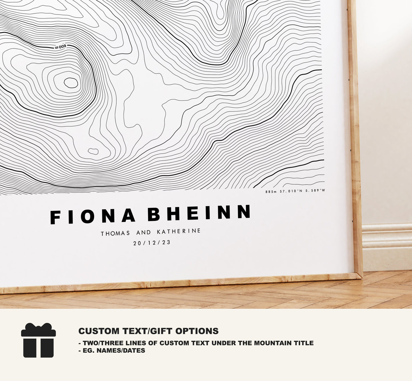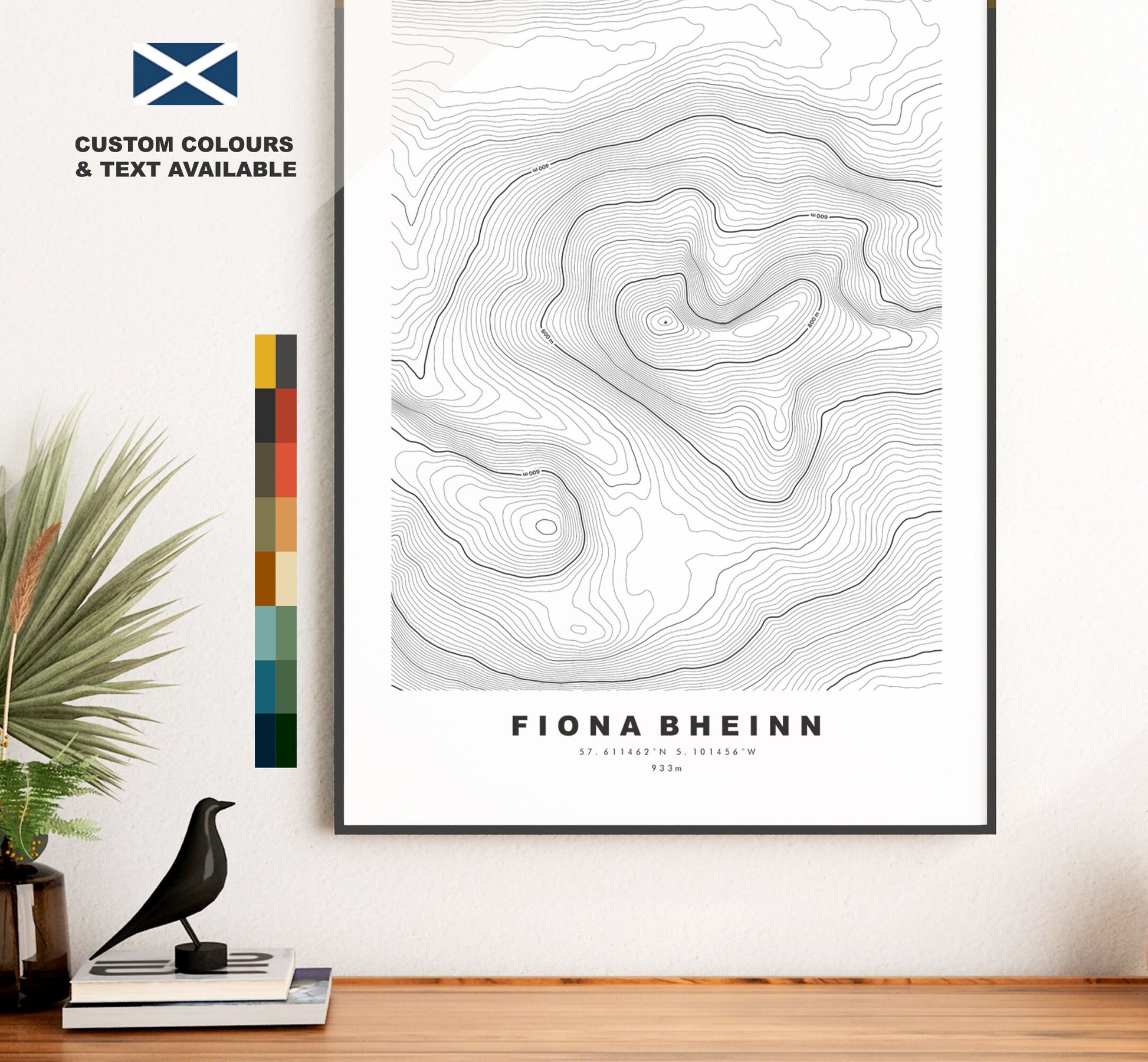 Fiona Bheinn Print - Contour Map - Fiona Bheinn Poster - Scotland - Topographic Map - Print - Wall Art - Fiona Bheinn Map