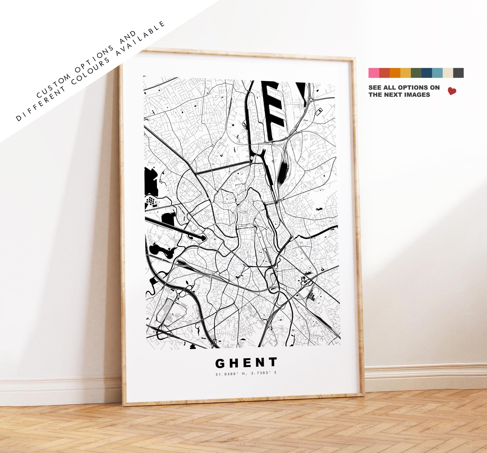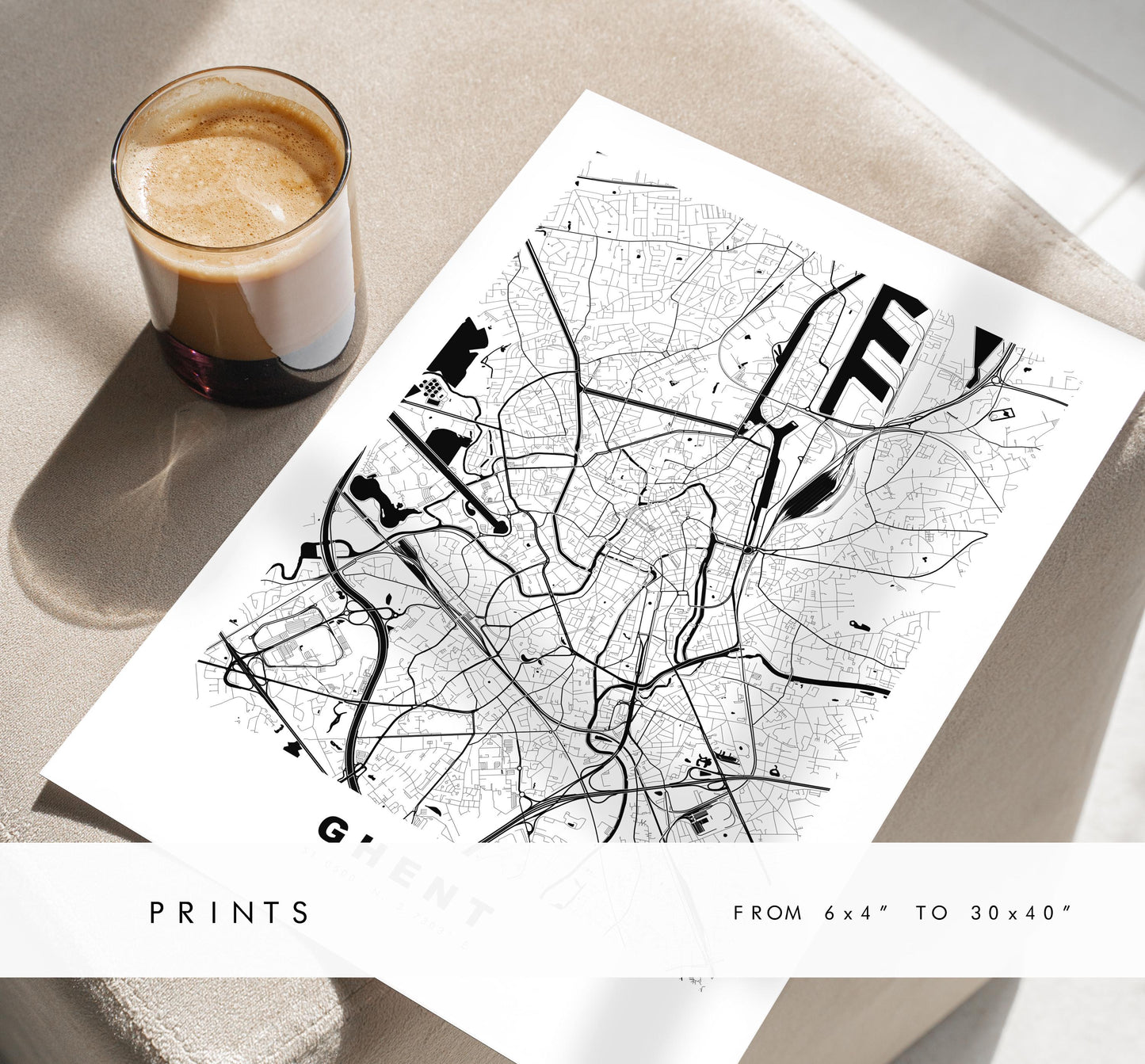 Ghent Map Print - City Map Poster - Map Art - Map Wall Art - Belgium City Maps - Ghent Print - Ghent Poster - Minimalist City Map