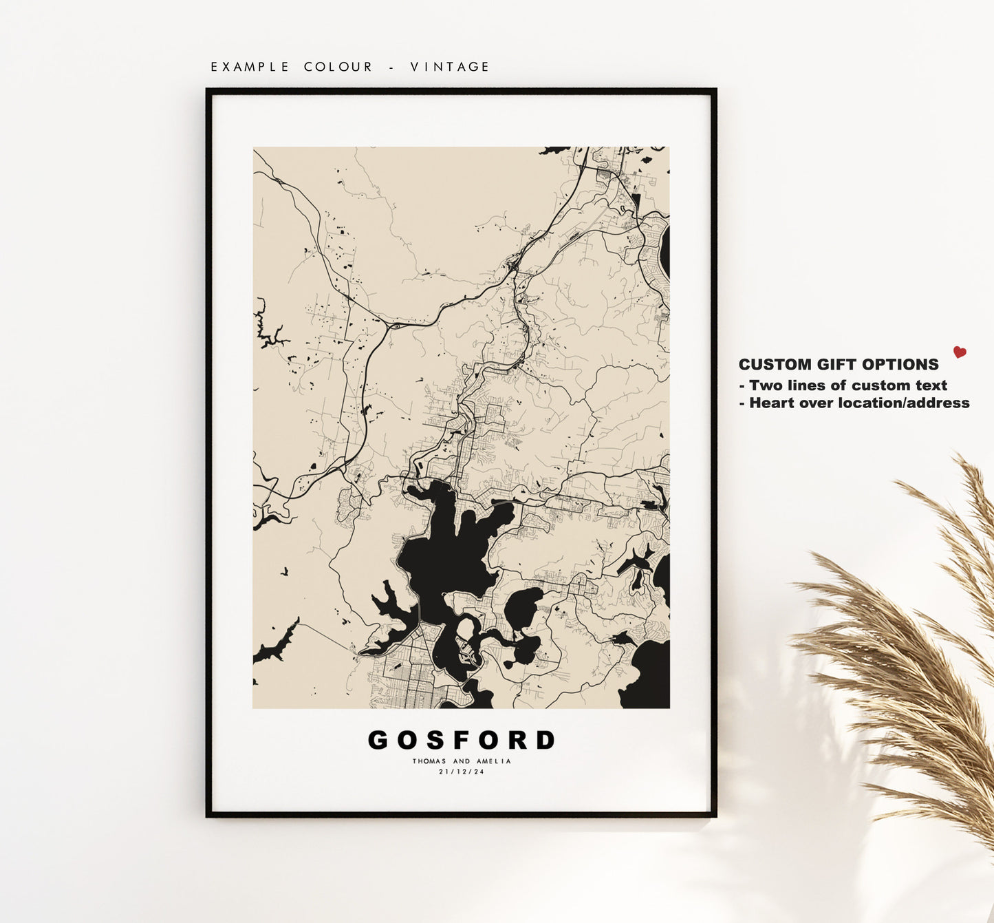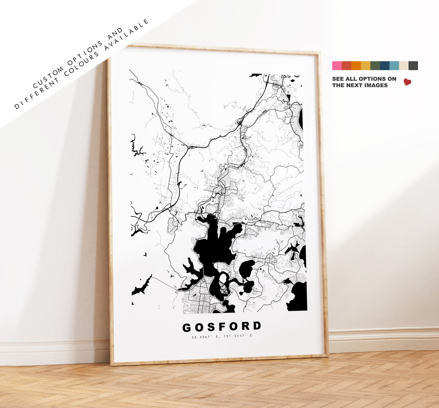 Gosford Map Print - City Map Poster - Map Wall Art - Australia City Maps - Gosford Print - Gosford Poster - Minimalist City Map - Australia