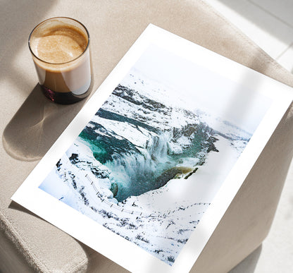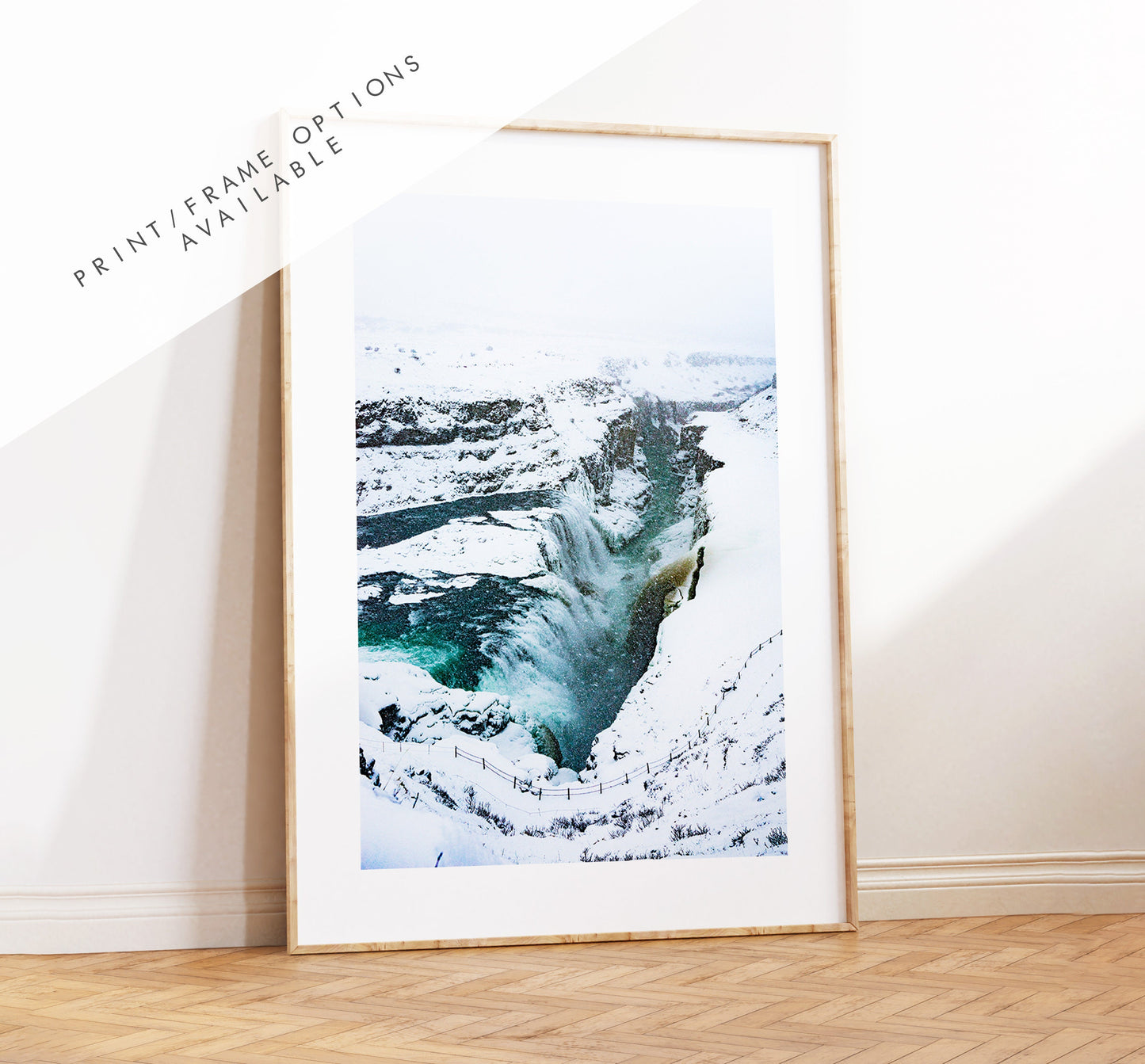 Gullfoss Waterfall - Iceland Photography Print - Iceland Wall Art - Iceland Poster - Frozen Landscape - Iceland Waterfalls - Landscape