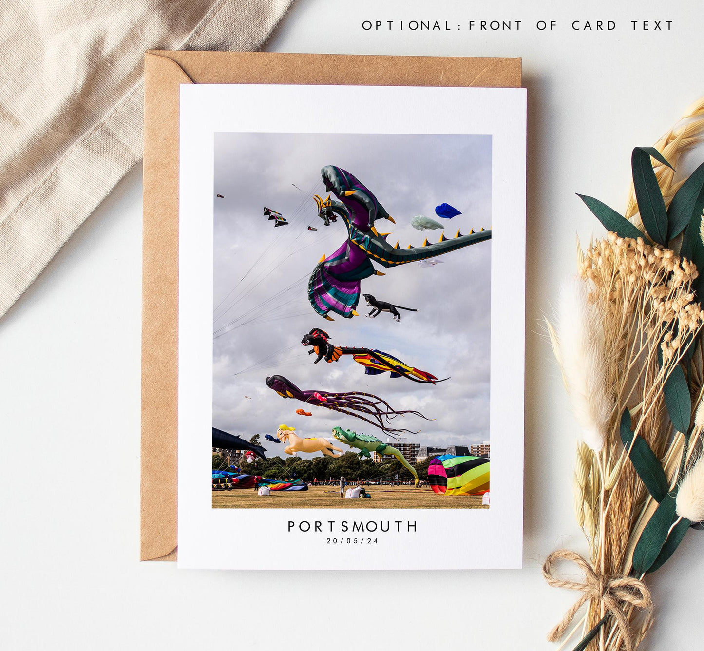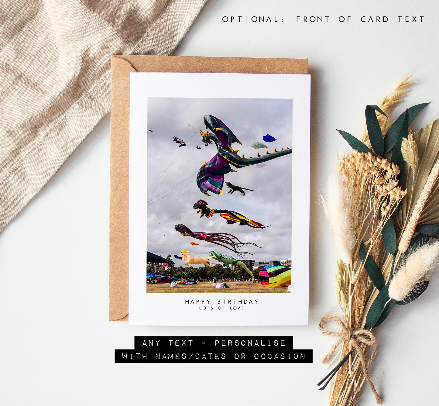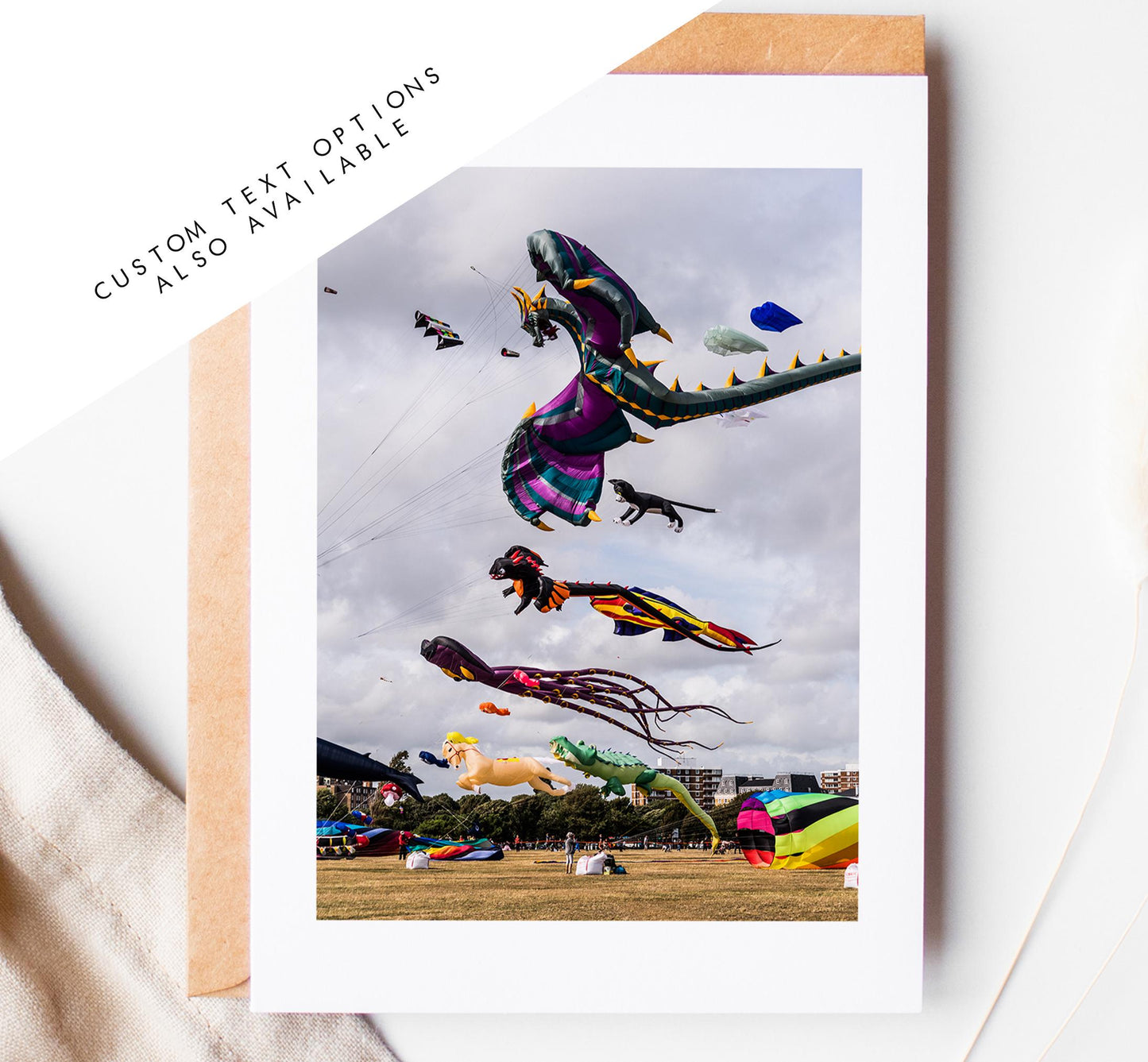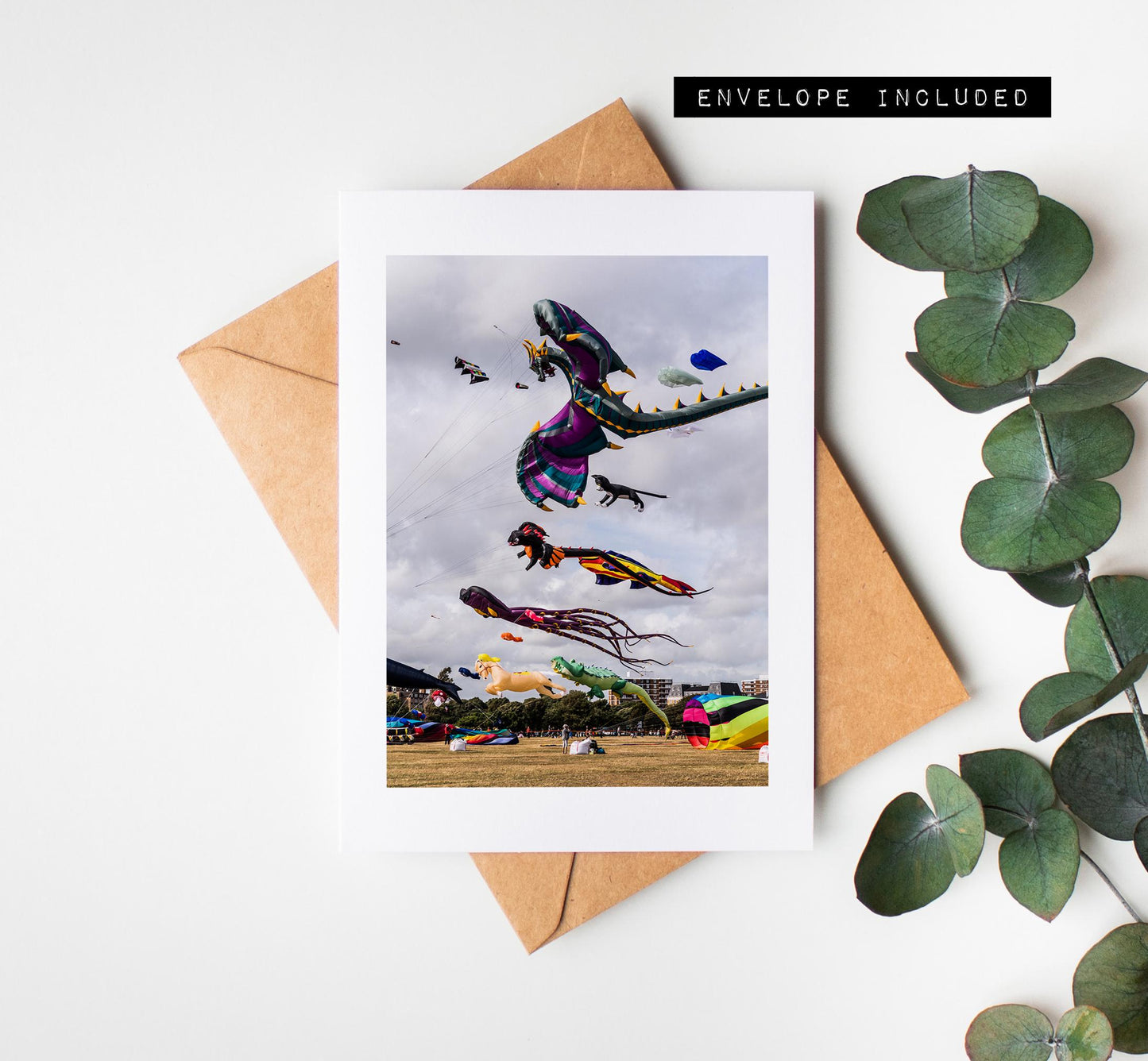 Kite Festival Greeting Card - featuring original photography by us. All of our cards are printed on 300gsm white recycled card stock and supplied with a recycled brown kraft envelope. Available blank inside or with an included message if you would like to send the card straight to the recipient!