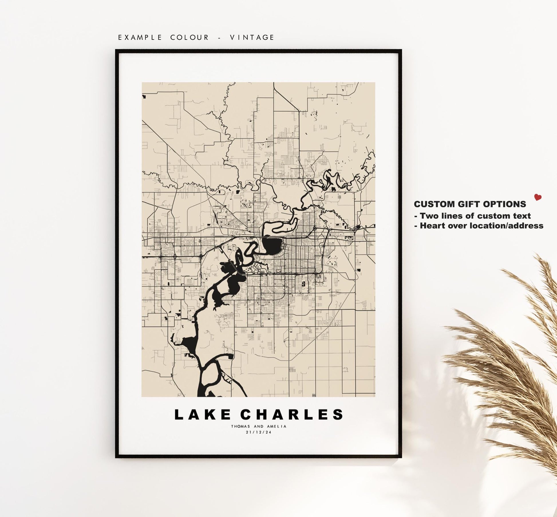 Lake Charles Map Print - City Map Poster - Map Art - USA City Maps - Lake Charles Print - Poster - Minimalist City Map - Louisiana