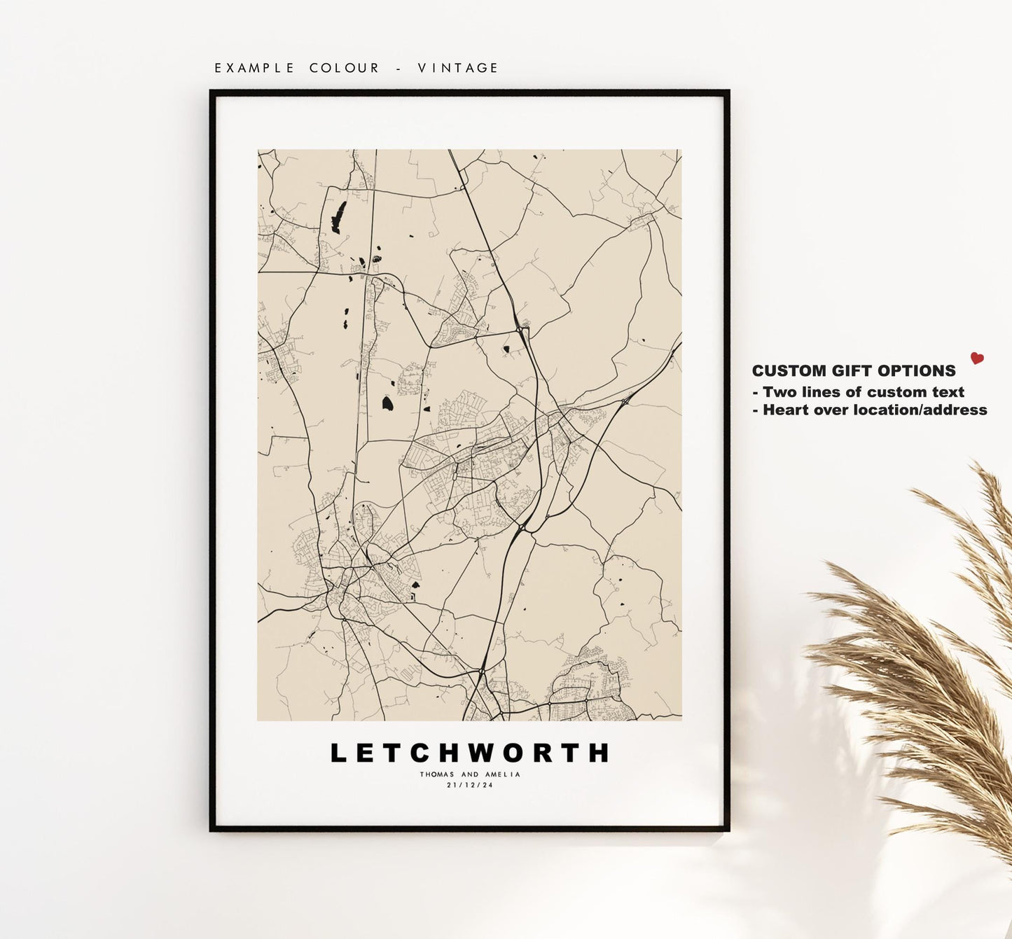Letchworth Map Print - Minimalist City Map Poster - Map - UK - Letchworth Garden City Print - Hertfordshire - Different Colours Available