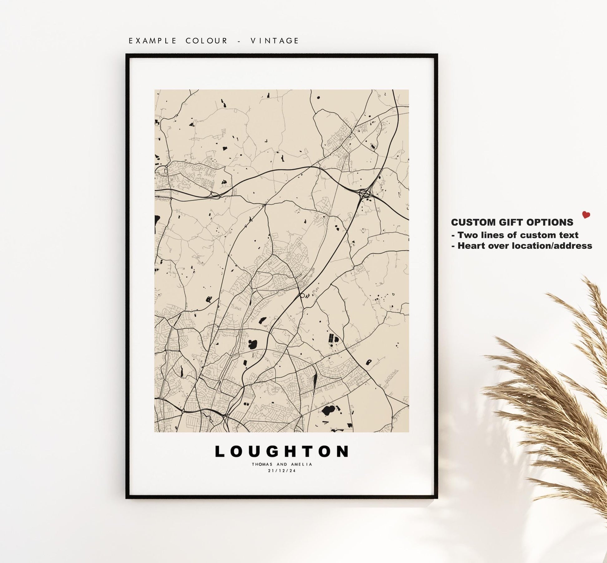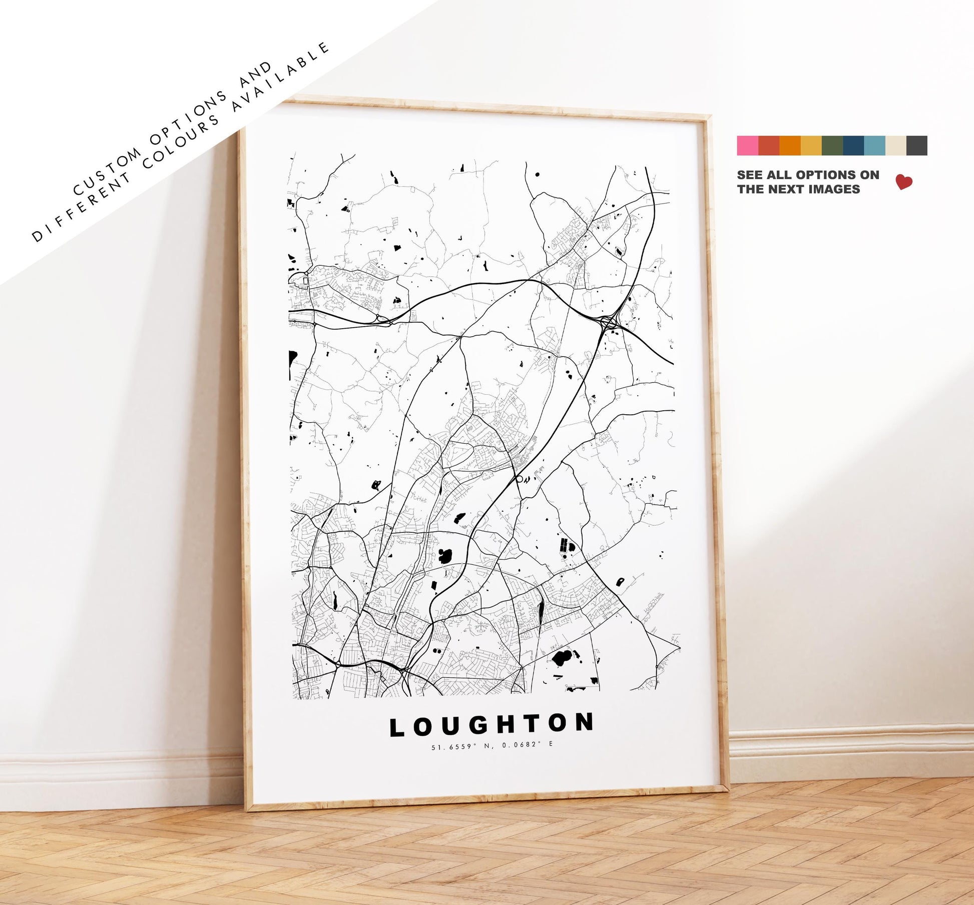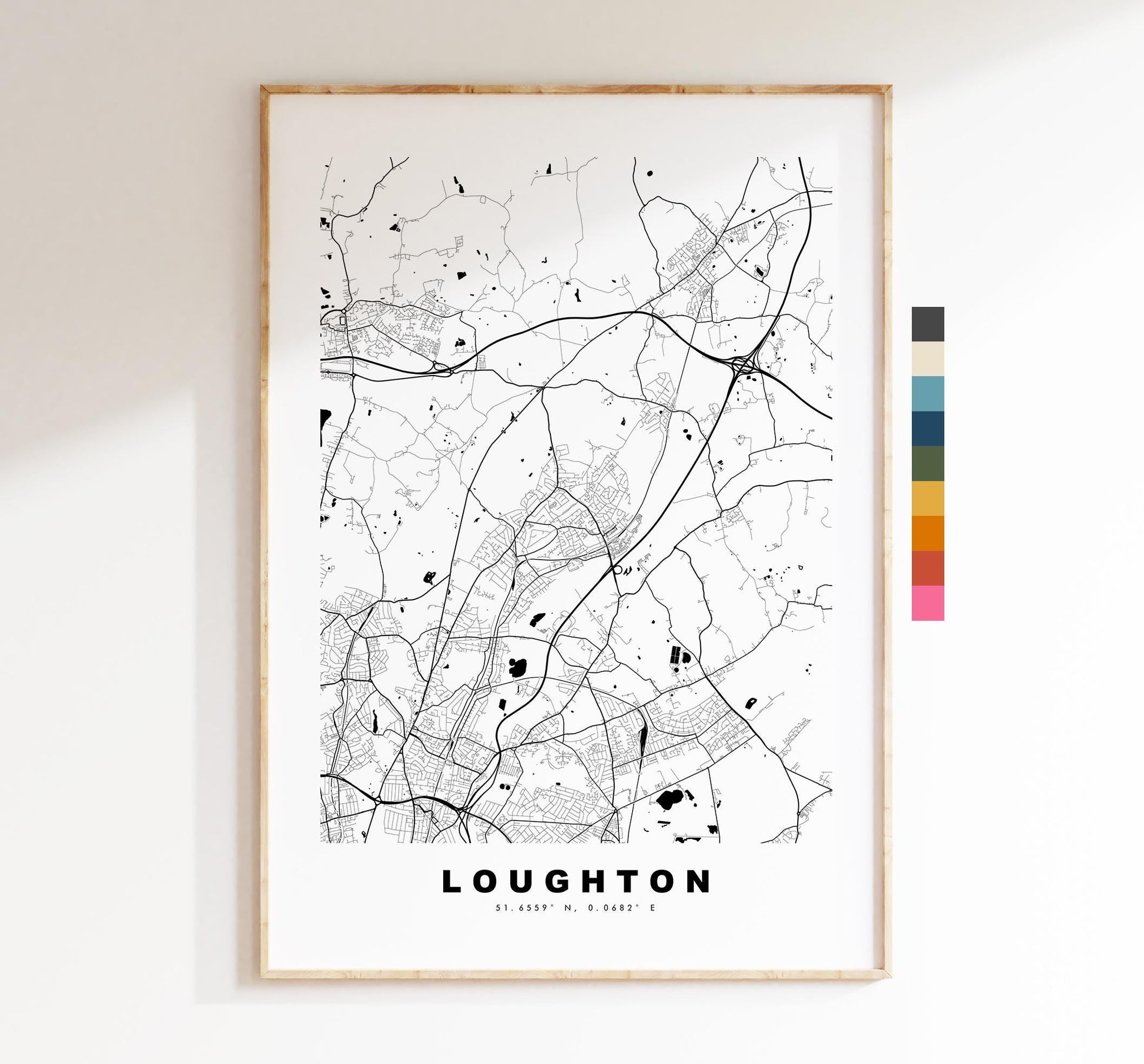 Loughton Map Print - Minimalist City Map Poster - Map Art - UK - Loughton Print - Loughton, Essex - Different Colours Available
