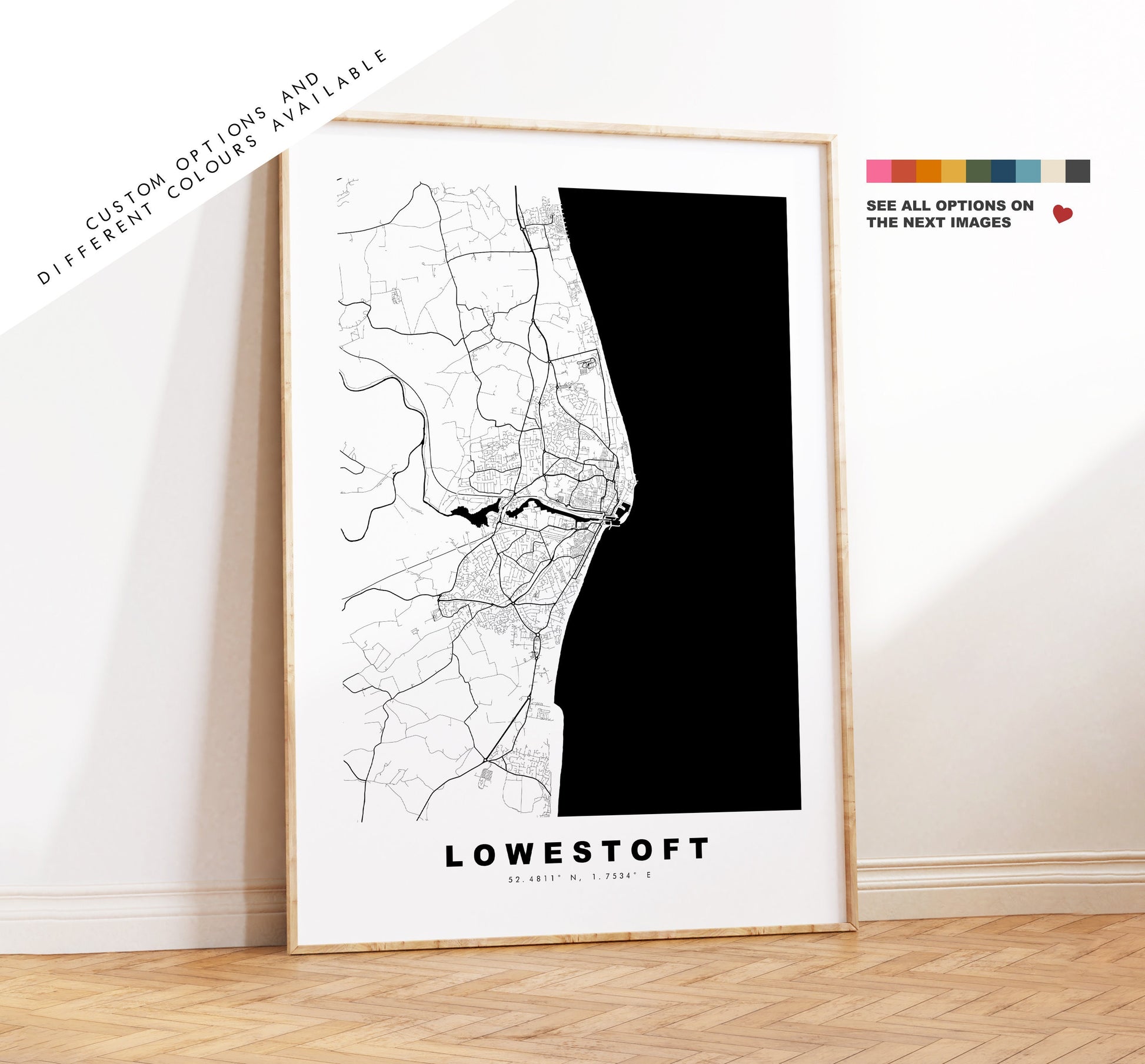 Lowestoft Map Print - Minimalist City Map Poster - Map Wall Art - UK - Lowestoft Print - Lowestoft Poster - Different Colours Available