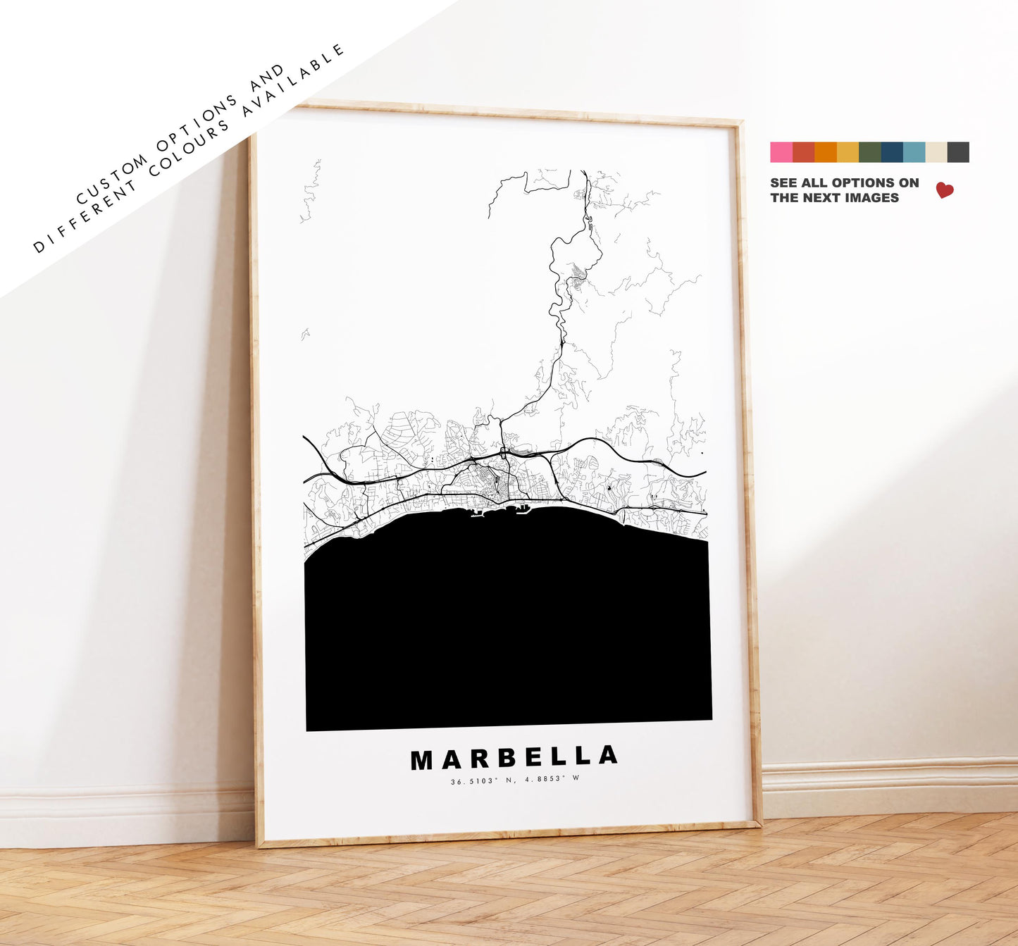 Marbella Map Print - City Map Poster - Map Art - Map Wall Art - Spain City Maps - Marbella Print - Marbella Poster - Minimalist City Map