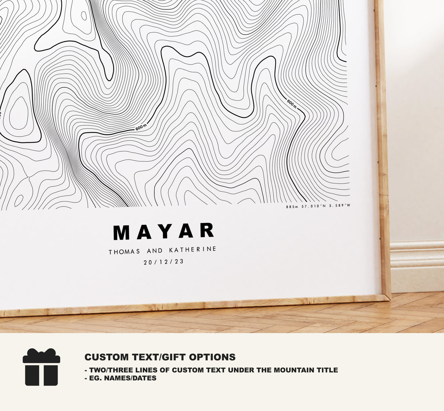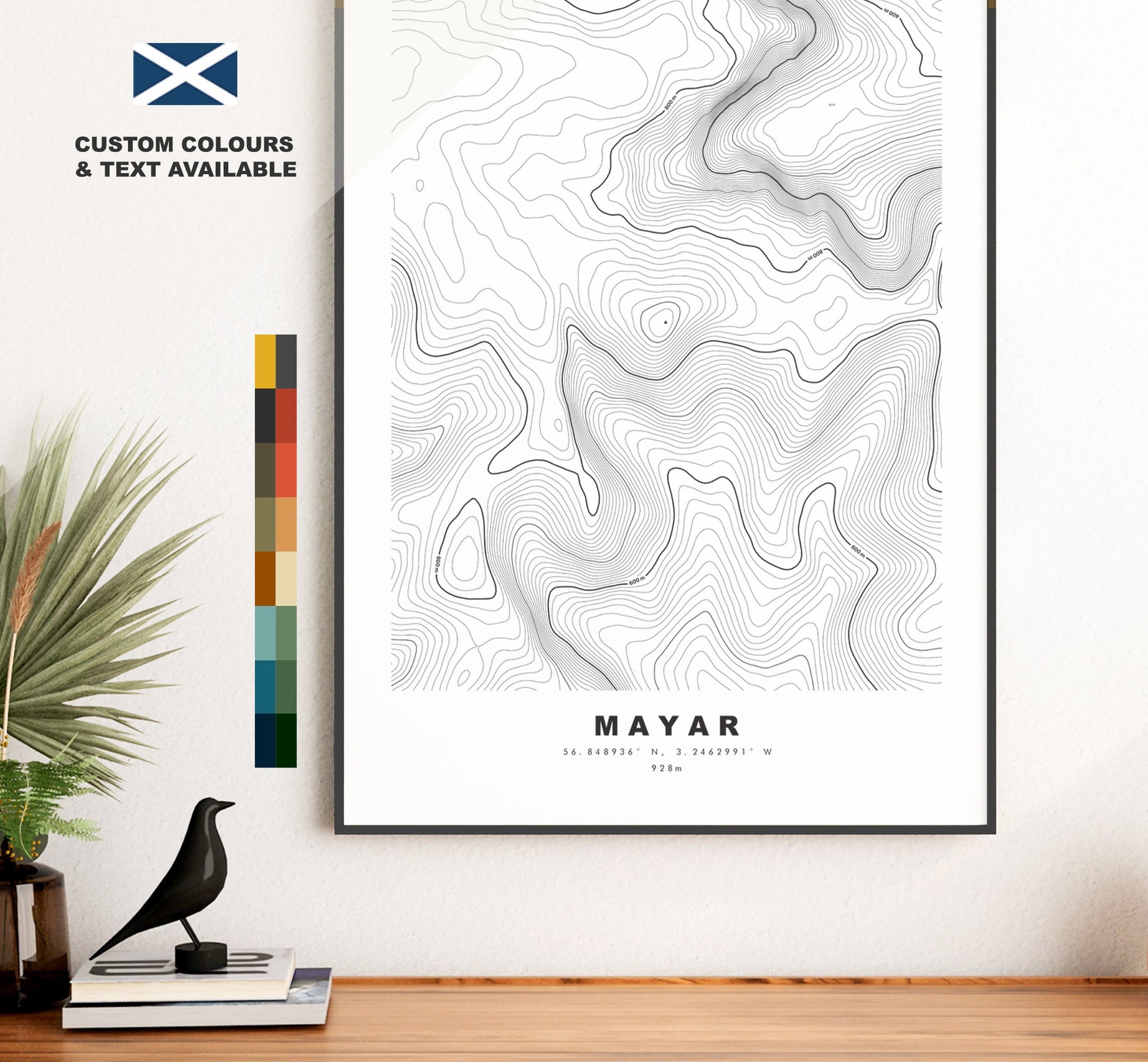 Mayar Print - Contour Map - Mayar Poster - Scotland - Topographic Map - Print - Wall Art - Mayar Map - Grampians - Munro - Mayar Mountain