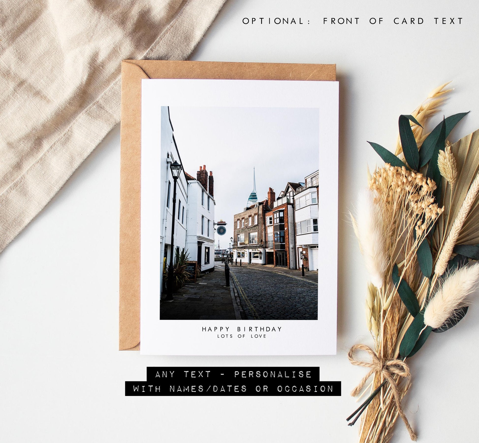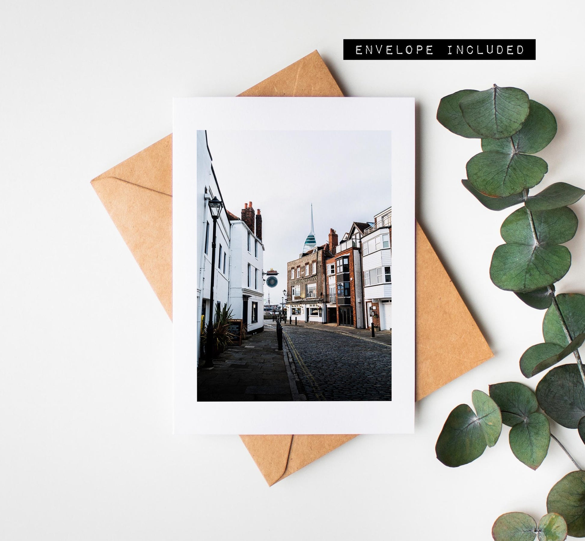 Old Portsmouth Greeting Card - featuring original photography by us. All of our cards are printed on 300gsm white recycled card stock and supplied with a recycled brown kraft envelope. Available blank inside or with an included message if you would like to send the card straight to the recipient!