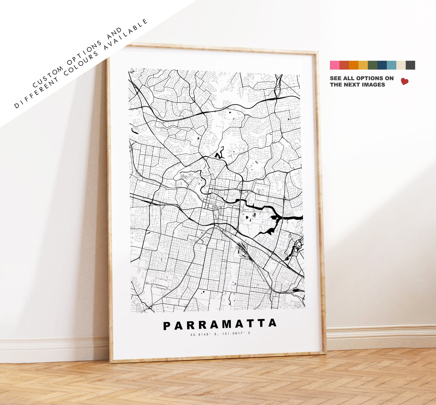 Parramatta Map Print - City Map Poster - Map Wall Art - Australia City Maps - Parramatta Print - Parramatta Poster - Minimalist City Map