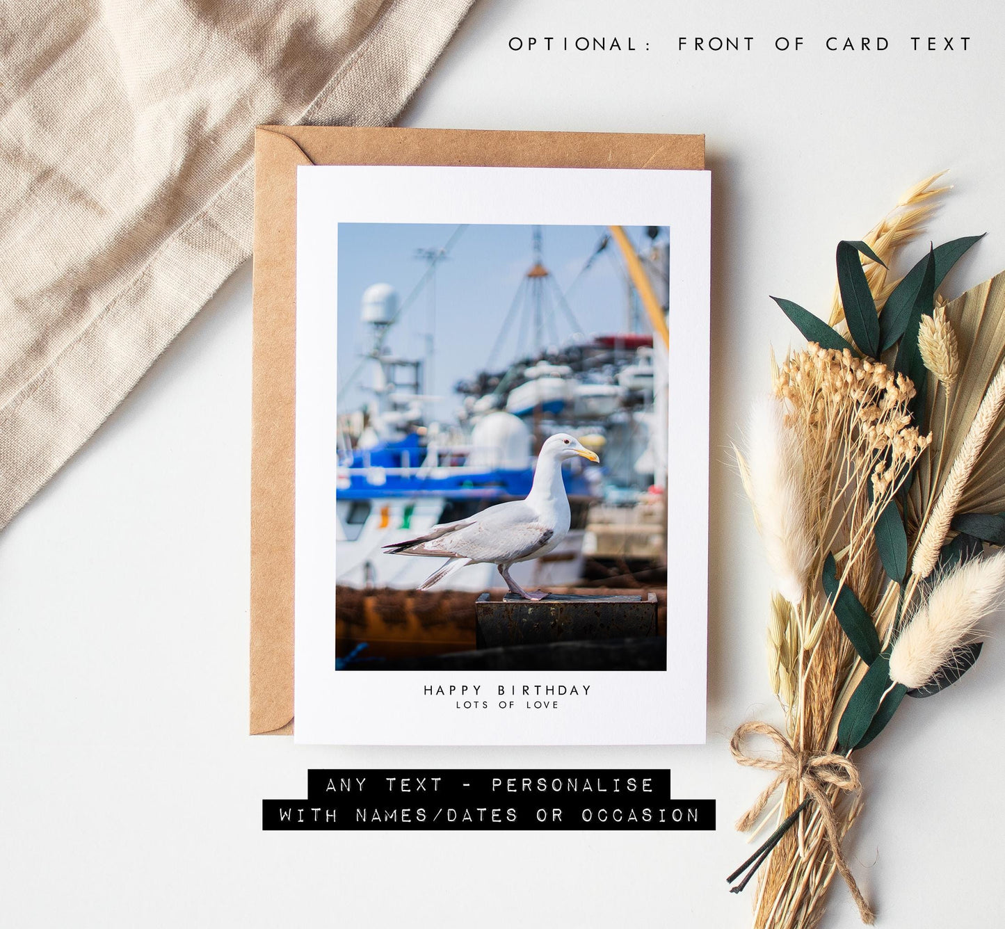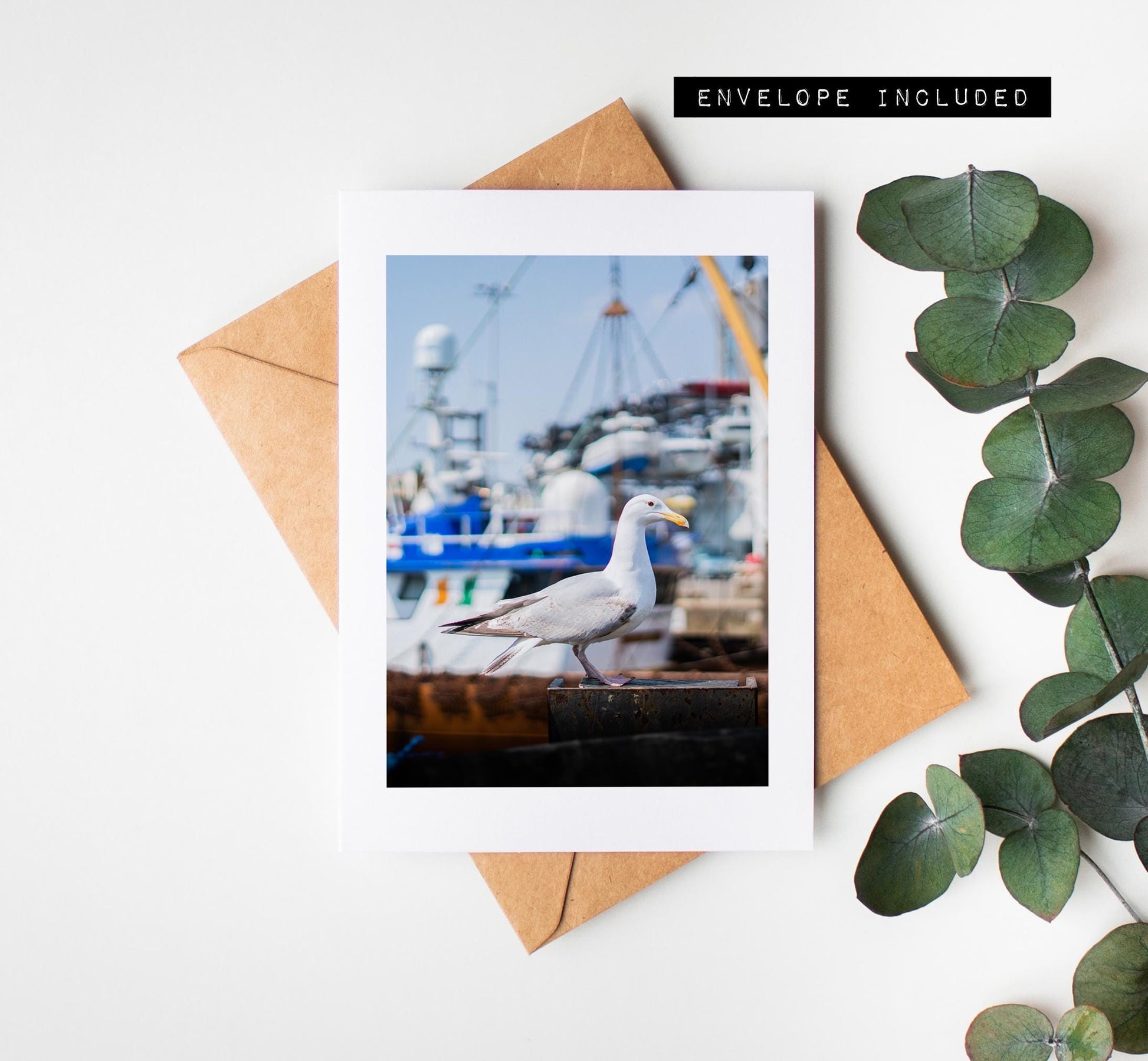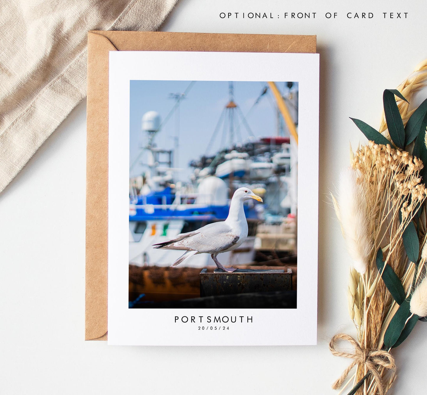 Portsmouth Seagull Greeting Card - featuring original photography by us. All of our cards are printed on 300gsm white recycled card stock and supplied with a recycled brown kraft envelope. Available blank inside or with an included message if you would like to send the card straight to the recipient!