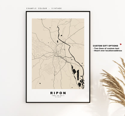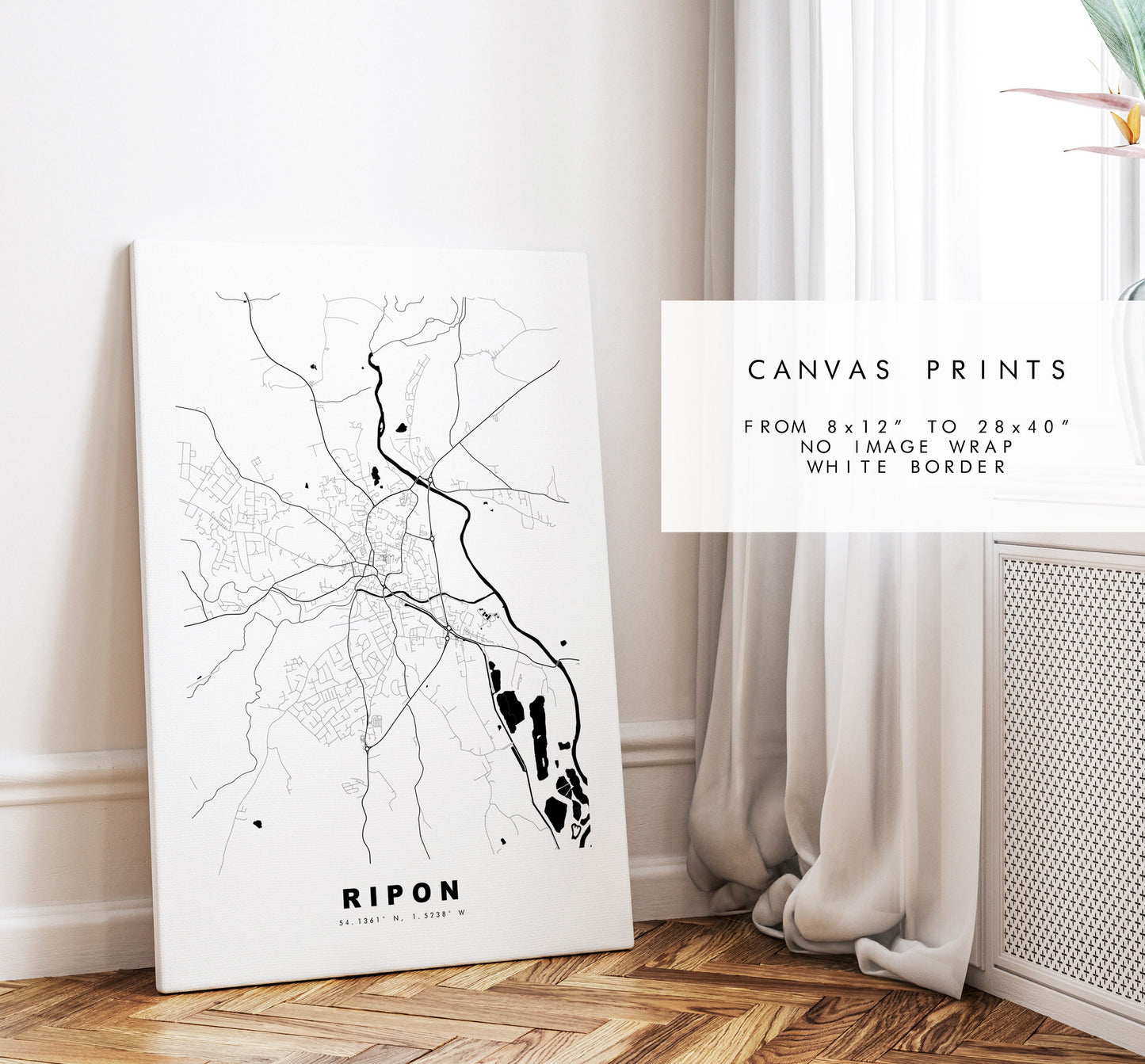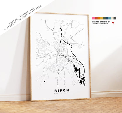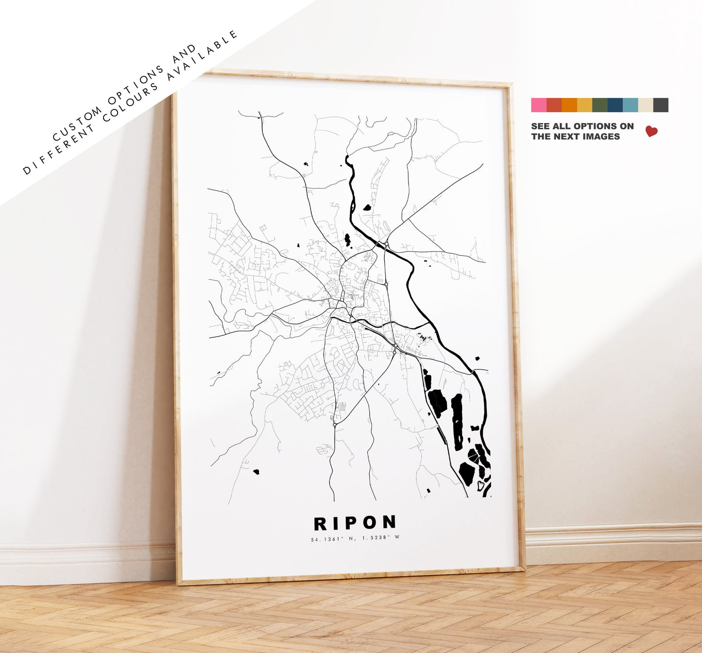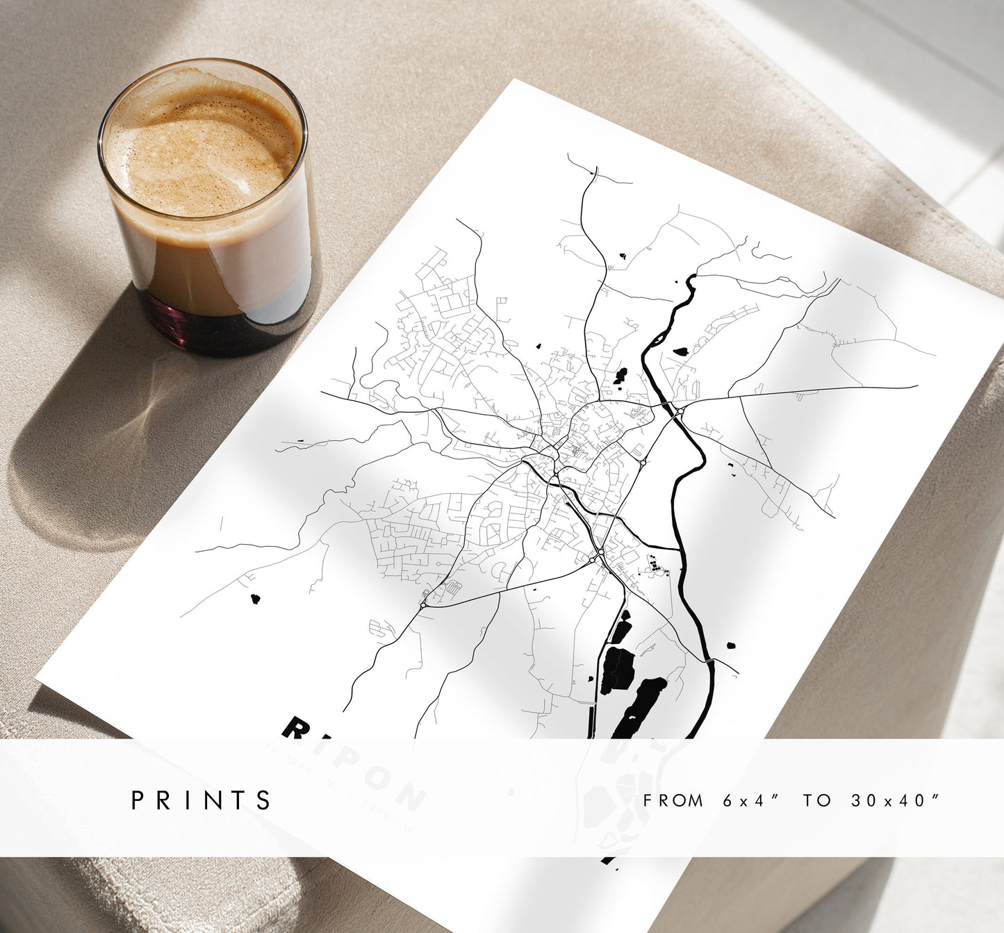 Ripon Map Print - Minimalist City Map Poster - Map Art - UK - Ripon Print - Ripon Poster - Different Colours Available