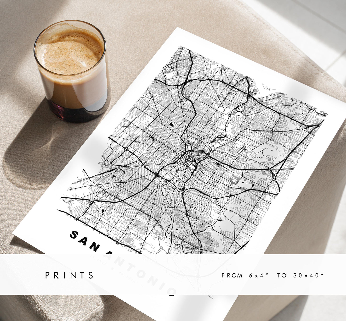 San Antonio Map Print - City Map Poster - Map Art - USA City Maps - San Antonio Print - San Antonio Poster - Minimalist City Map - Texas