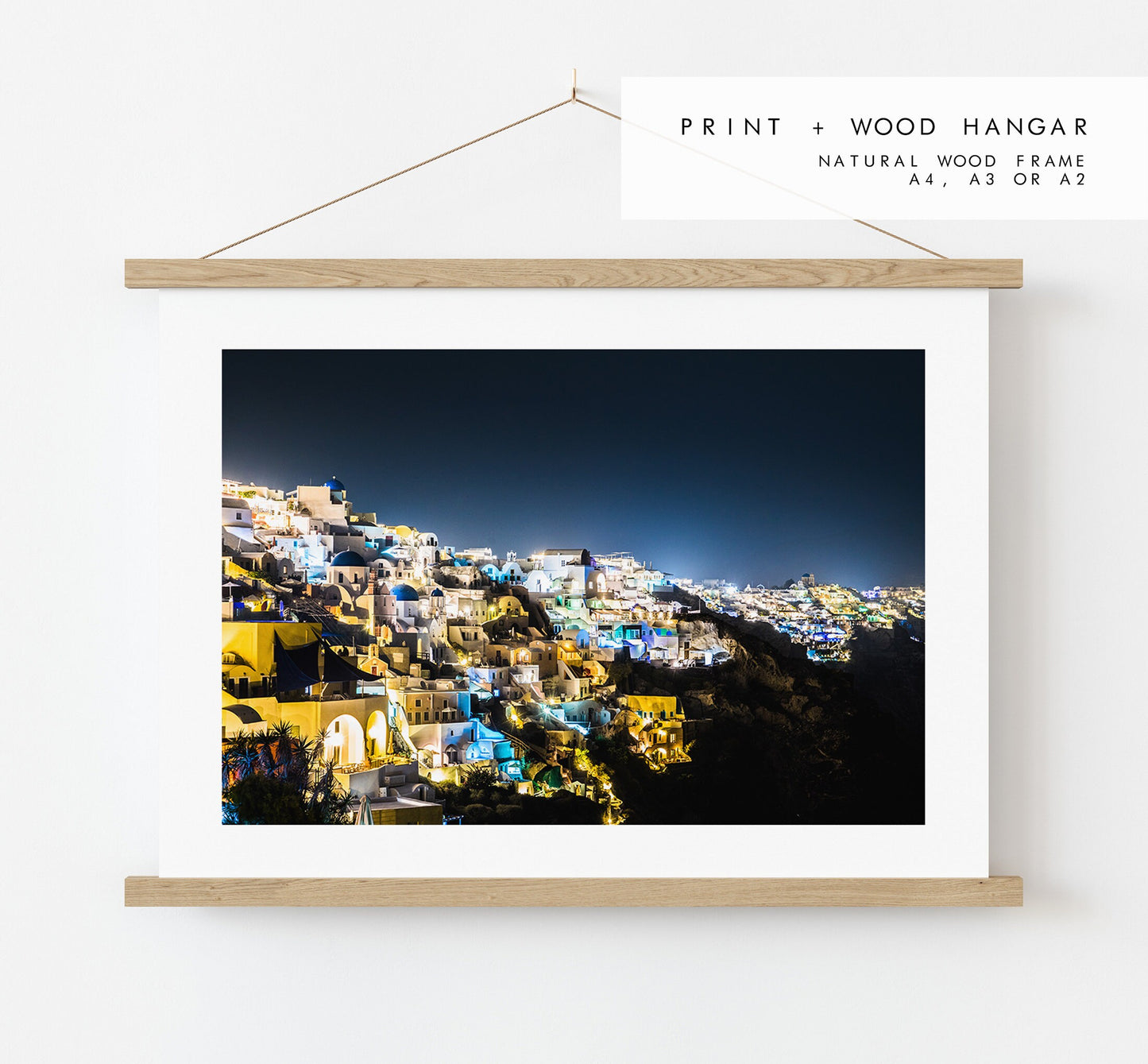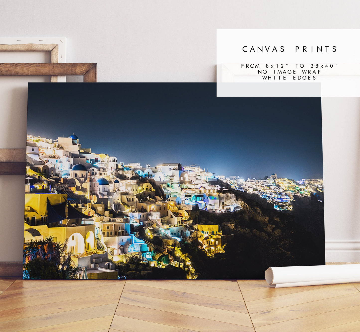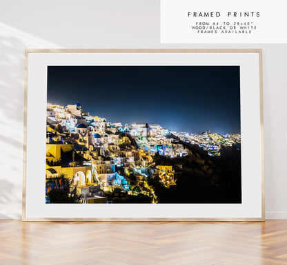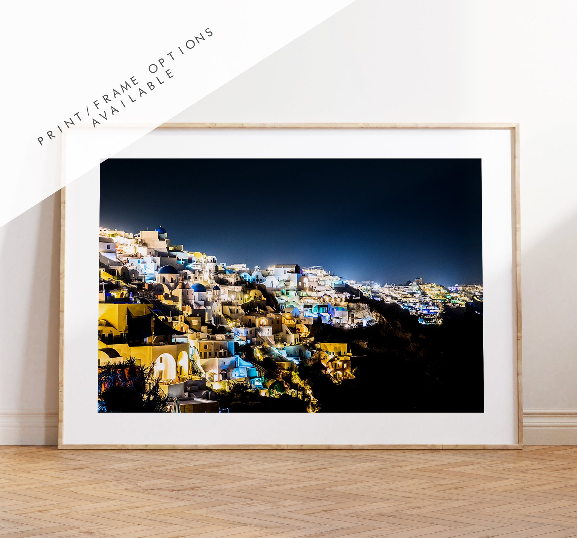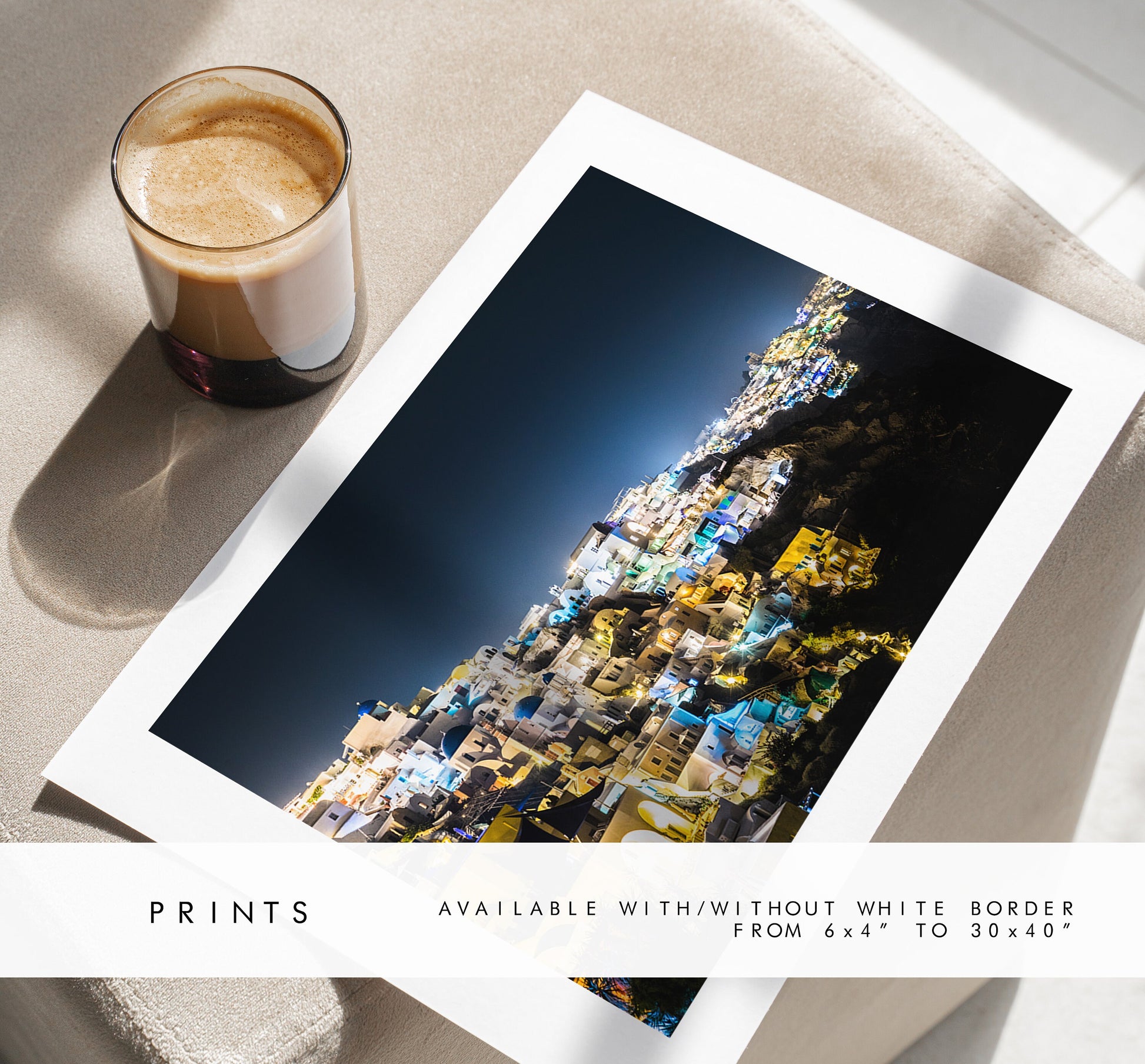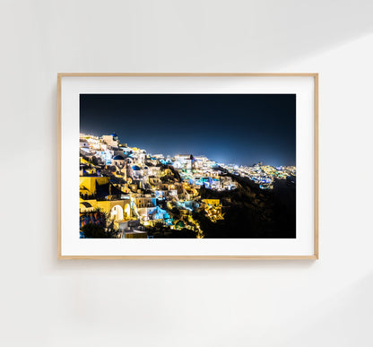Santorini Night Photography Print - Greece - Print - Poster - Santorini Photography - Greece Wall Art - Nightscape - Thera - Fira - Night