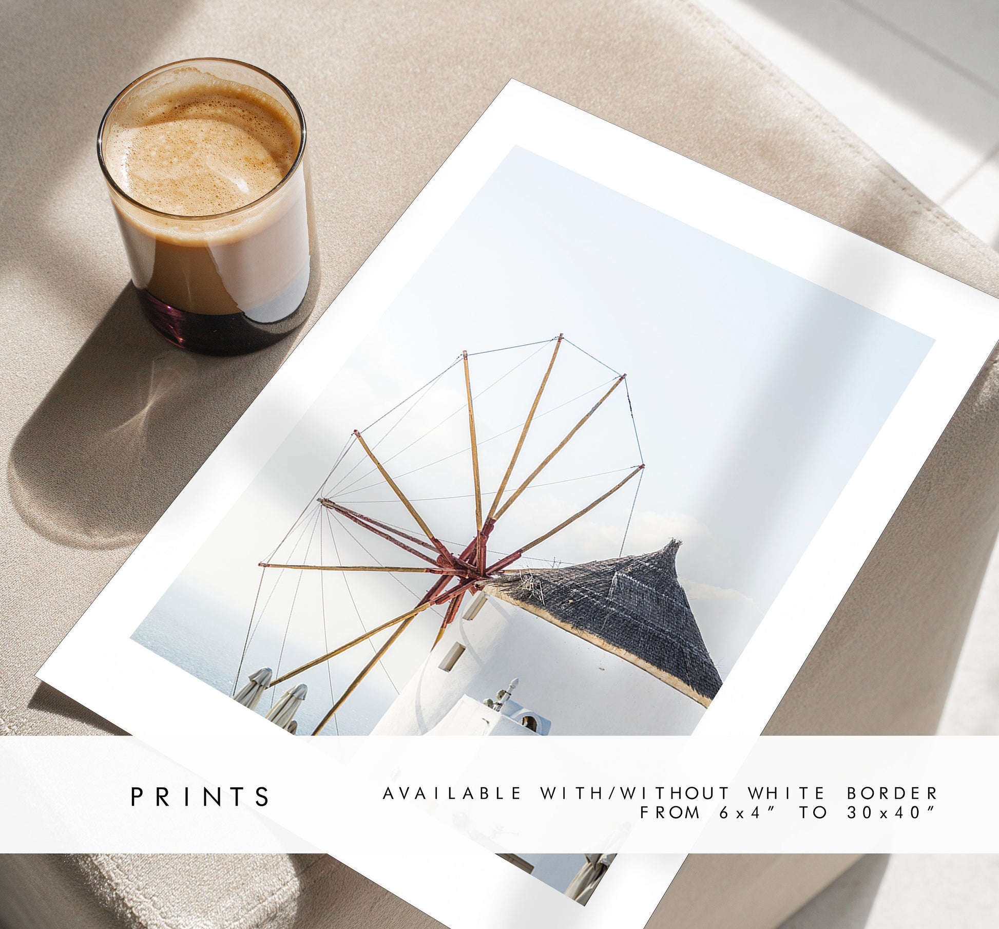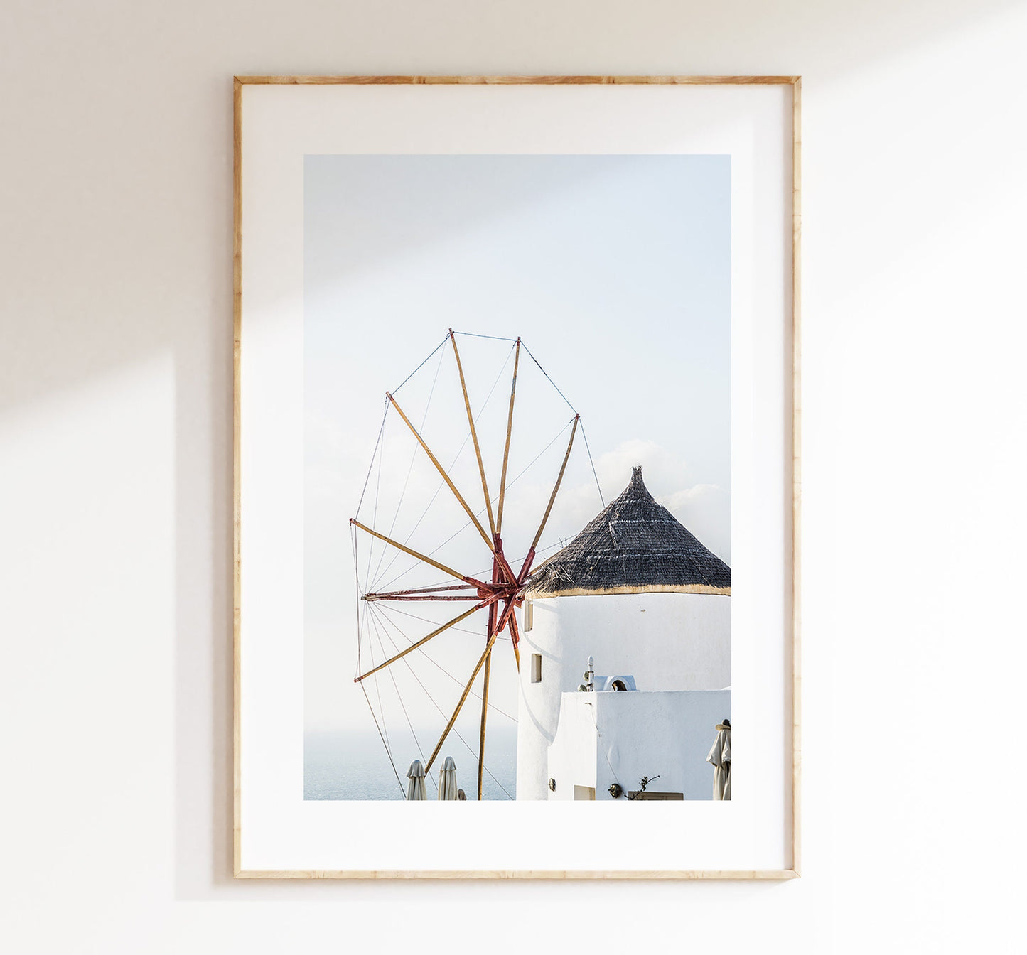 Santorini Windmills Photography Print - Greece - Print - Poster - Santorini Photography - Greece Wall Art - Windmill - Portrait - Greek