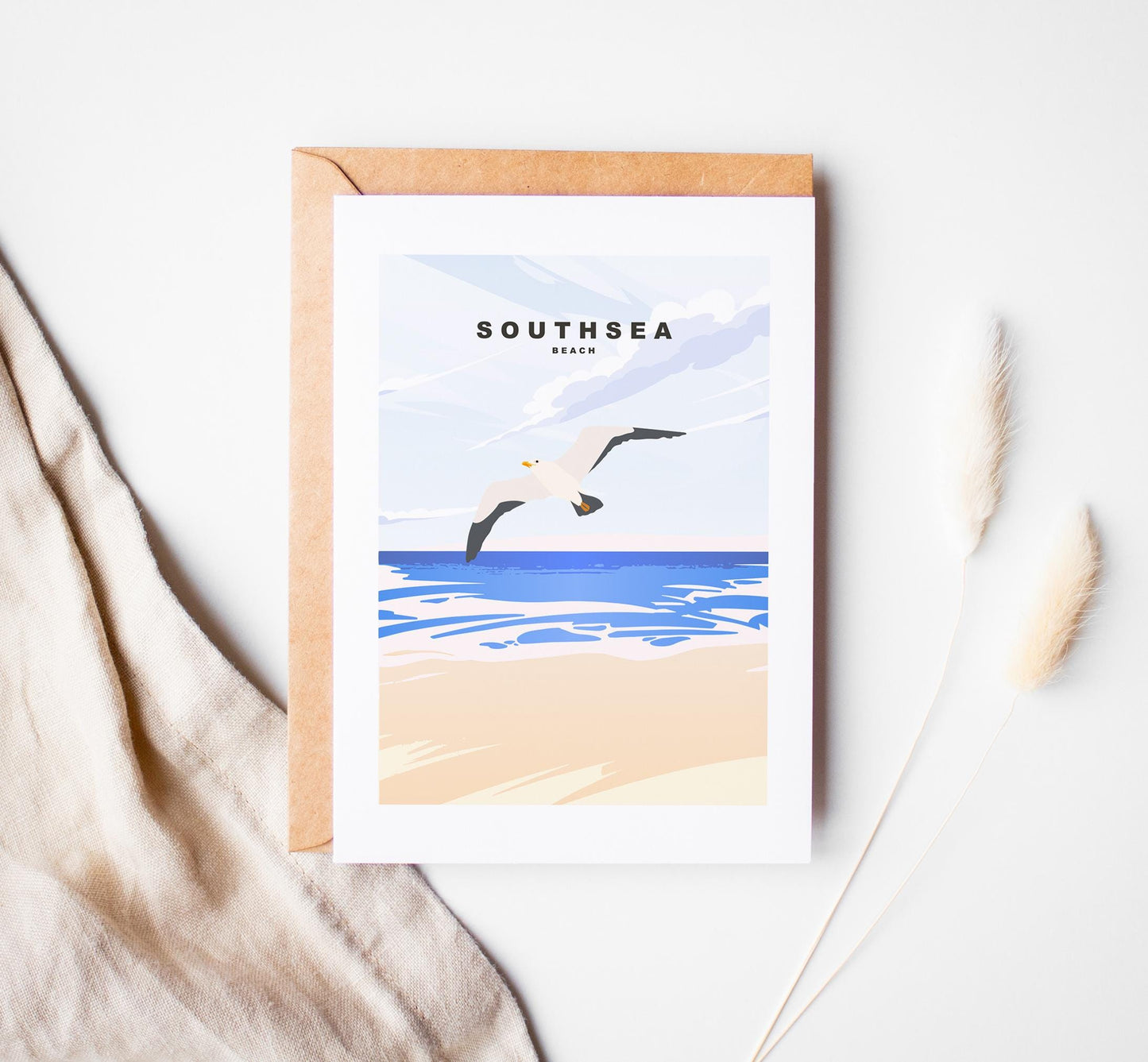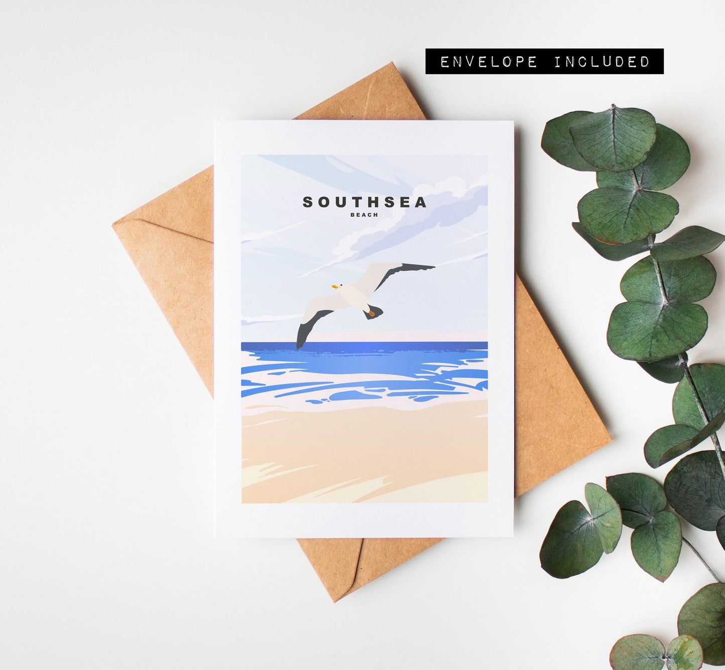 Southsea Beach Greeting Card - All of our cards are printed on 300gsm white recycled card stock and supplied with a recycled kraft envelope. Available blank inside or with an included message if you would like to send the card straight to the recipient!