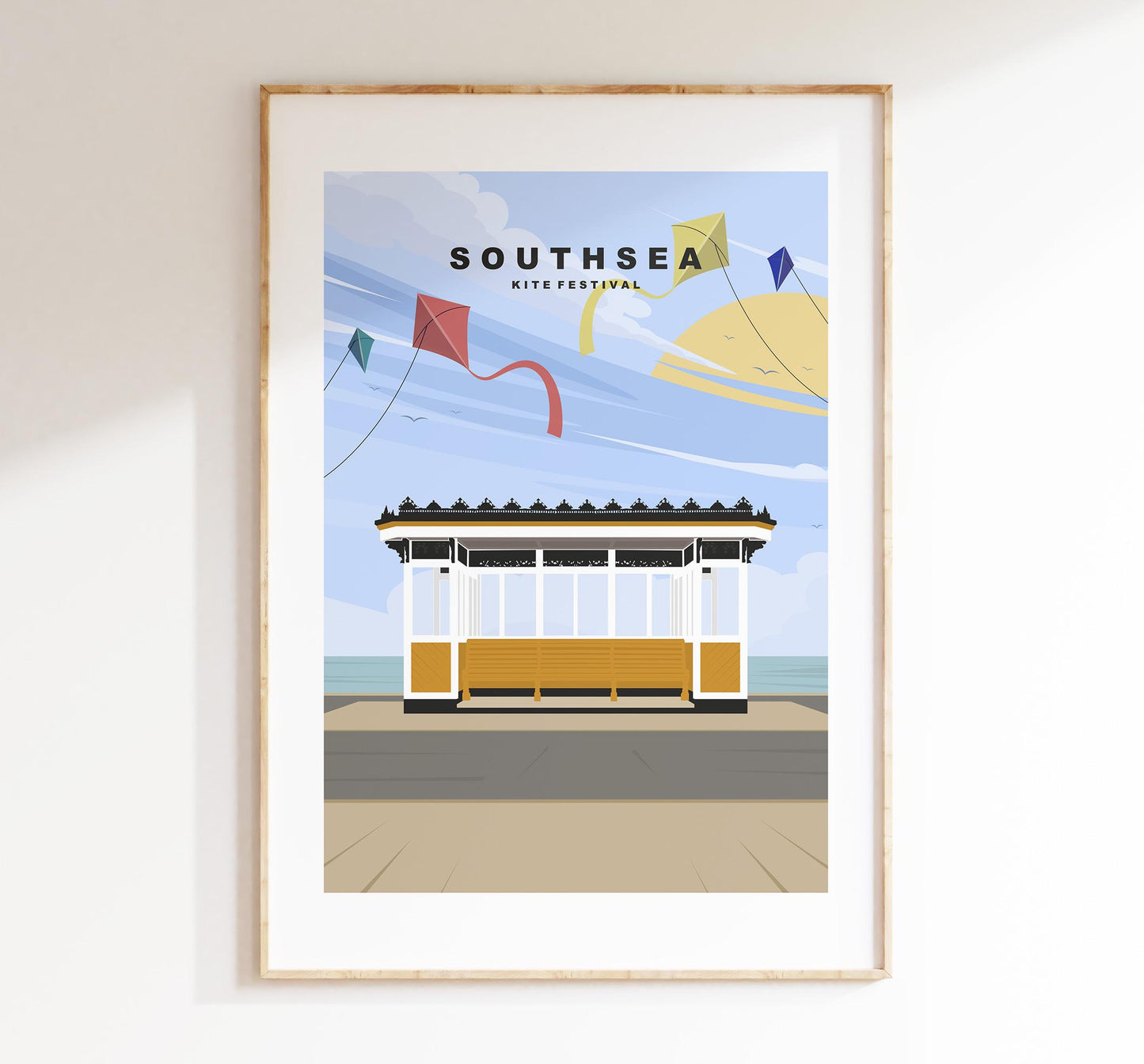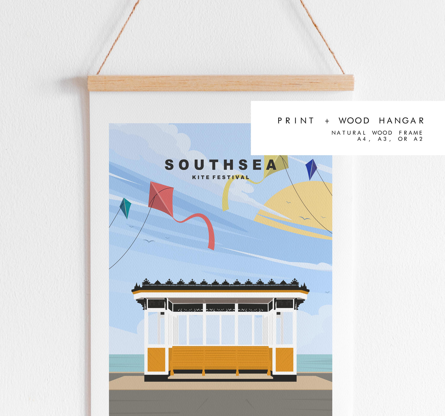 Southsea Kite Festival Travel Poster - Featuring an original illustration by us and inspired by retro travel posters these prints make for a great addition to any home and perfect reminder of your favourite places!