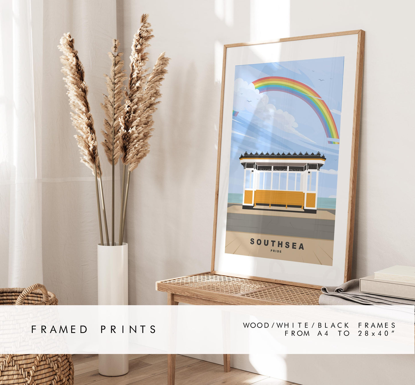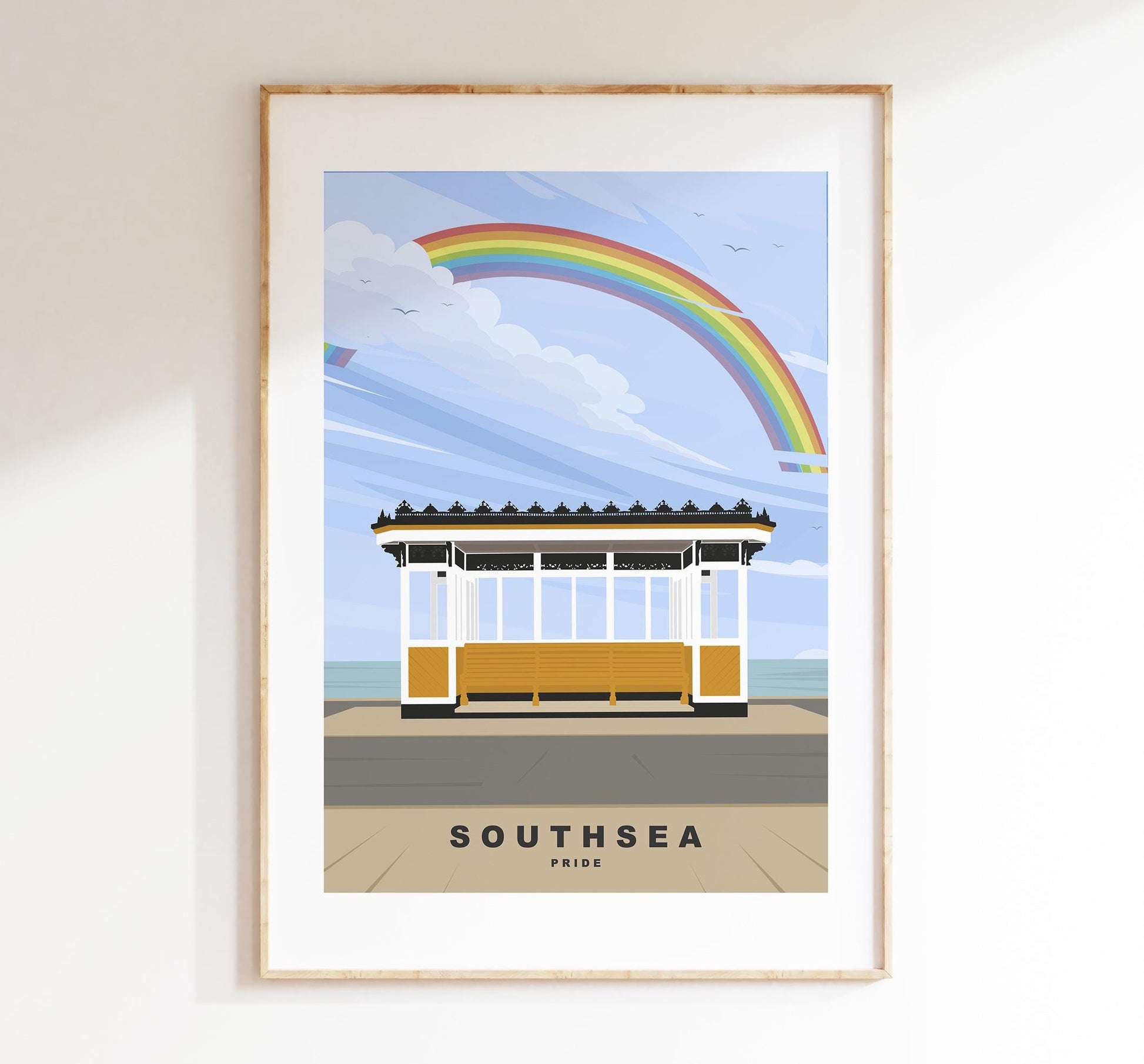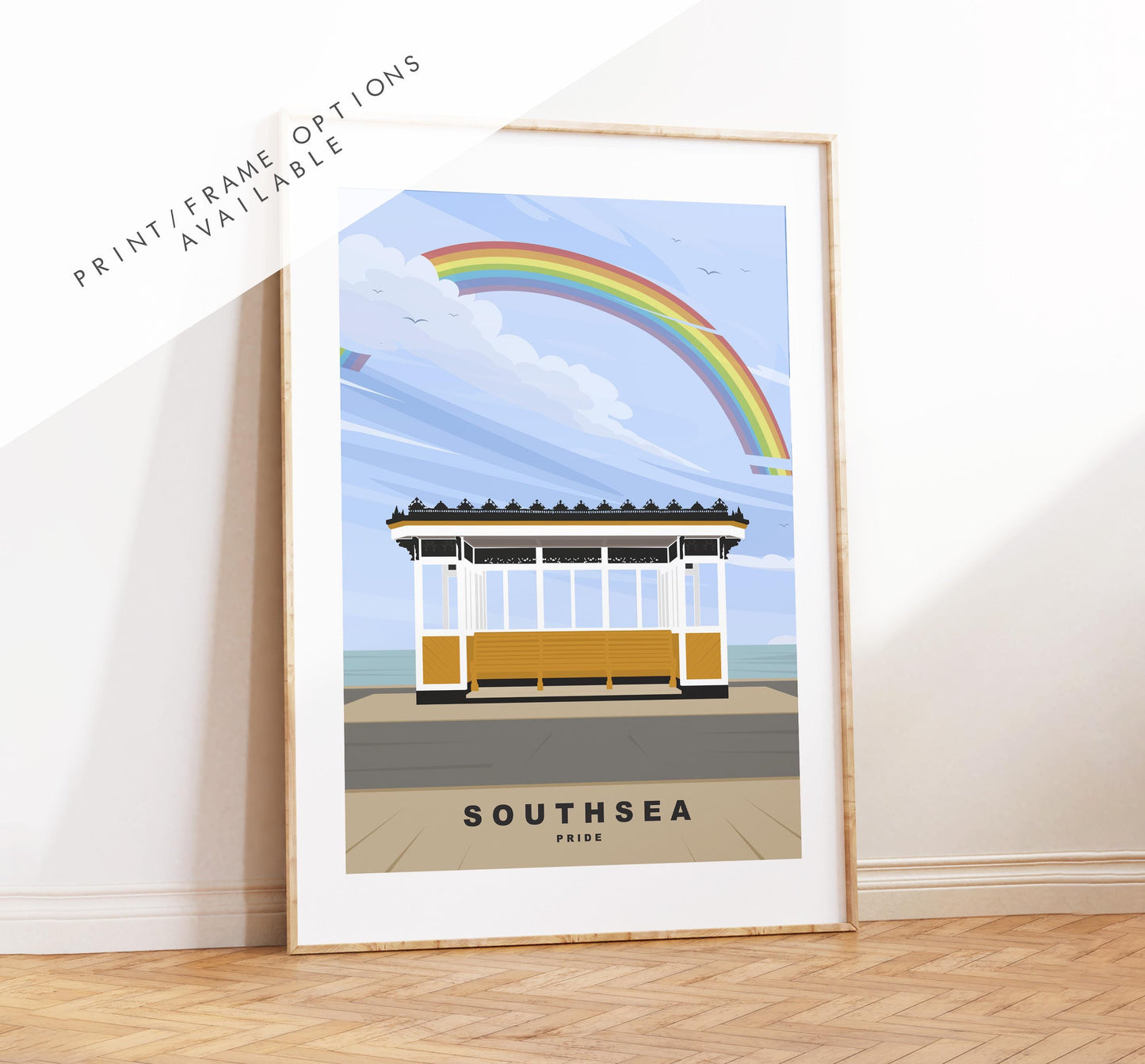 Southsea Pride Travel Poster - Wall Art Print - Southsea and Portsmouth Travel Posters - Minimalist Retro Style - Prints or Framed Prints