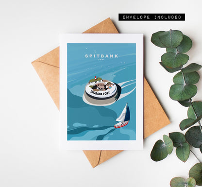 Spitbank Fort Greeting Card - Portsmouth and Southsea Cards (Travel Designs) - Blank Inside or Include Message - Envelope Included