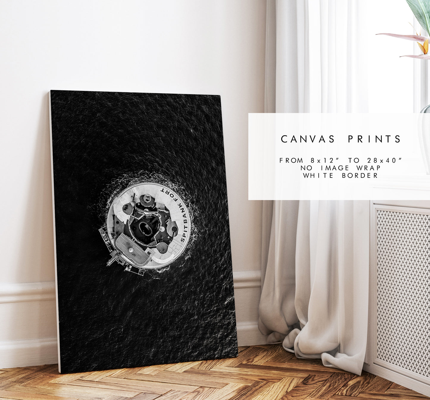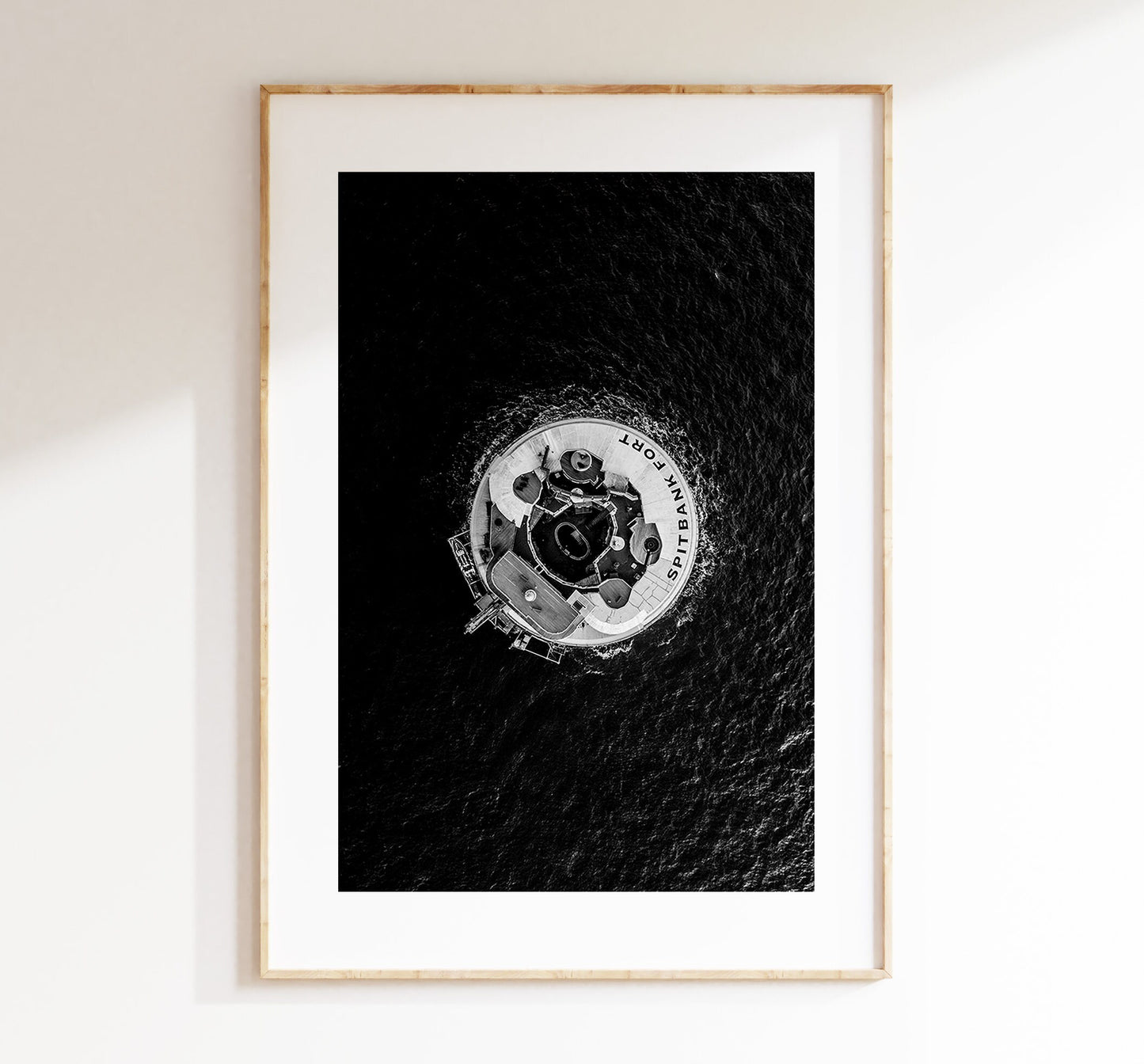 Spitbank Fort - Photography Print - Portsmouth and Southsea Prints - Wall Art - Frame and Canvas Options - Portrait - Aerial - BW