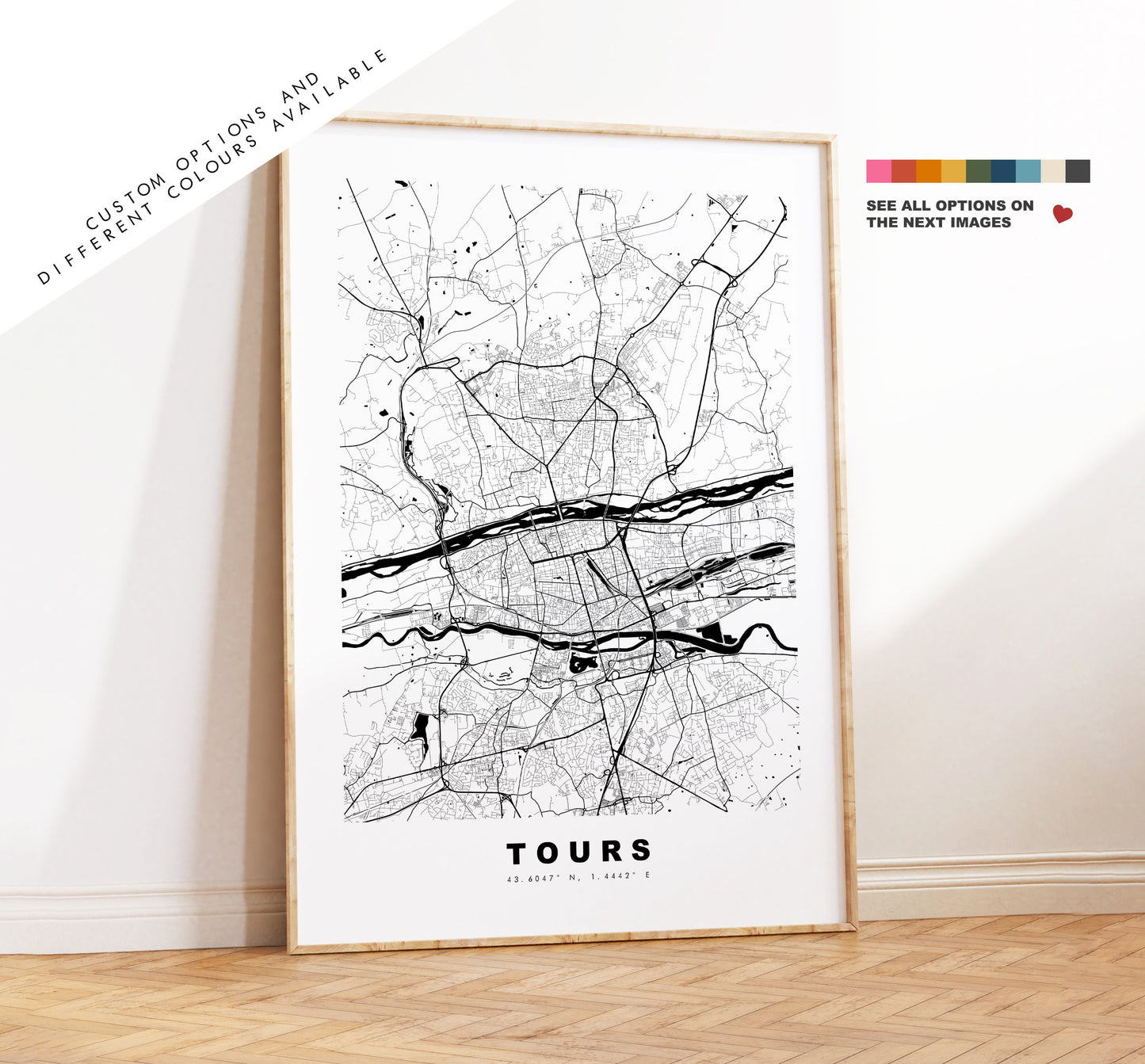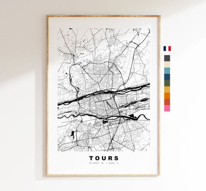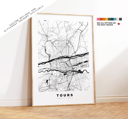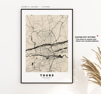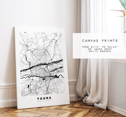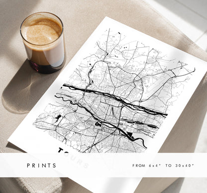 Tours Map Print - City Map Poster - Map Wall Art - France City Maps - Tours Print - Tours Poster - Minimalist City Map - France