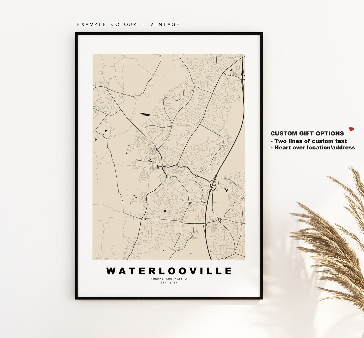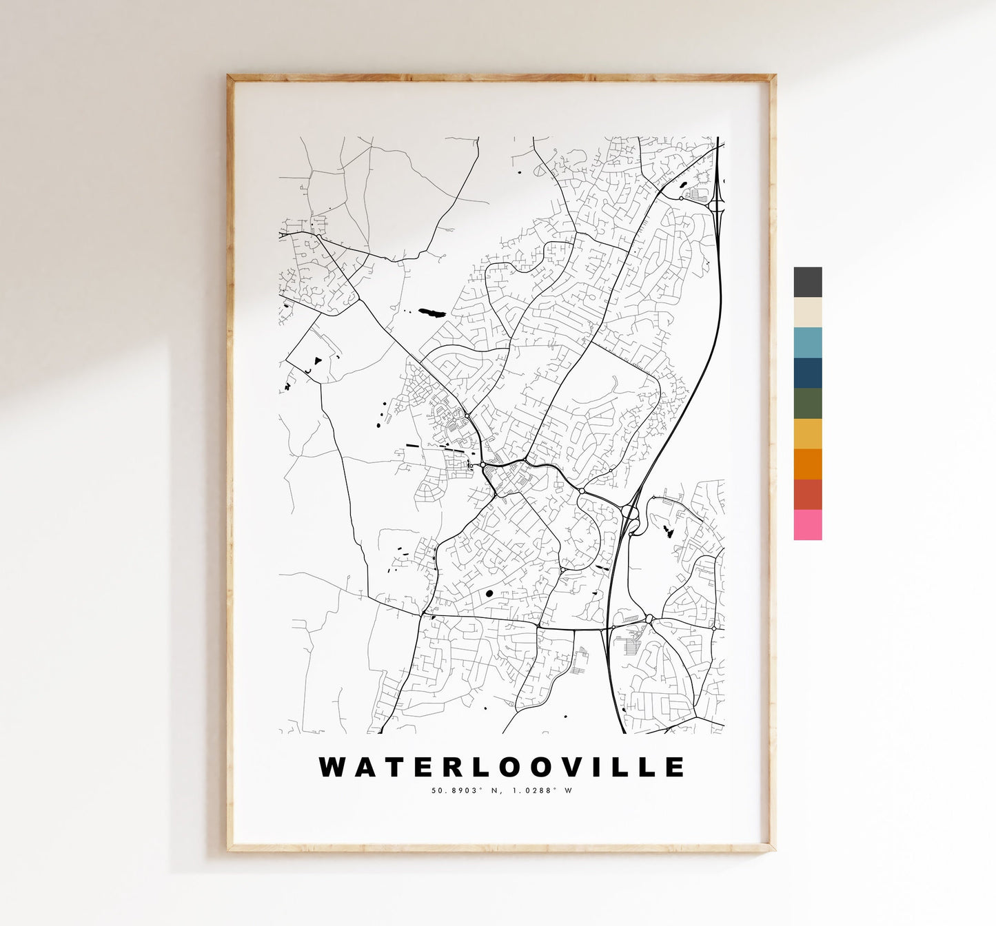 Waterlooville Map Print - Minimalist City Map Poster - Map Art - UK - Waterlooville - Waterlooville Poster - Different Colours Available
