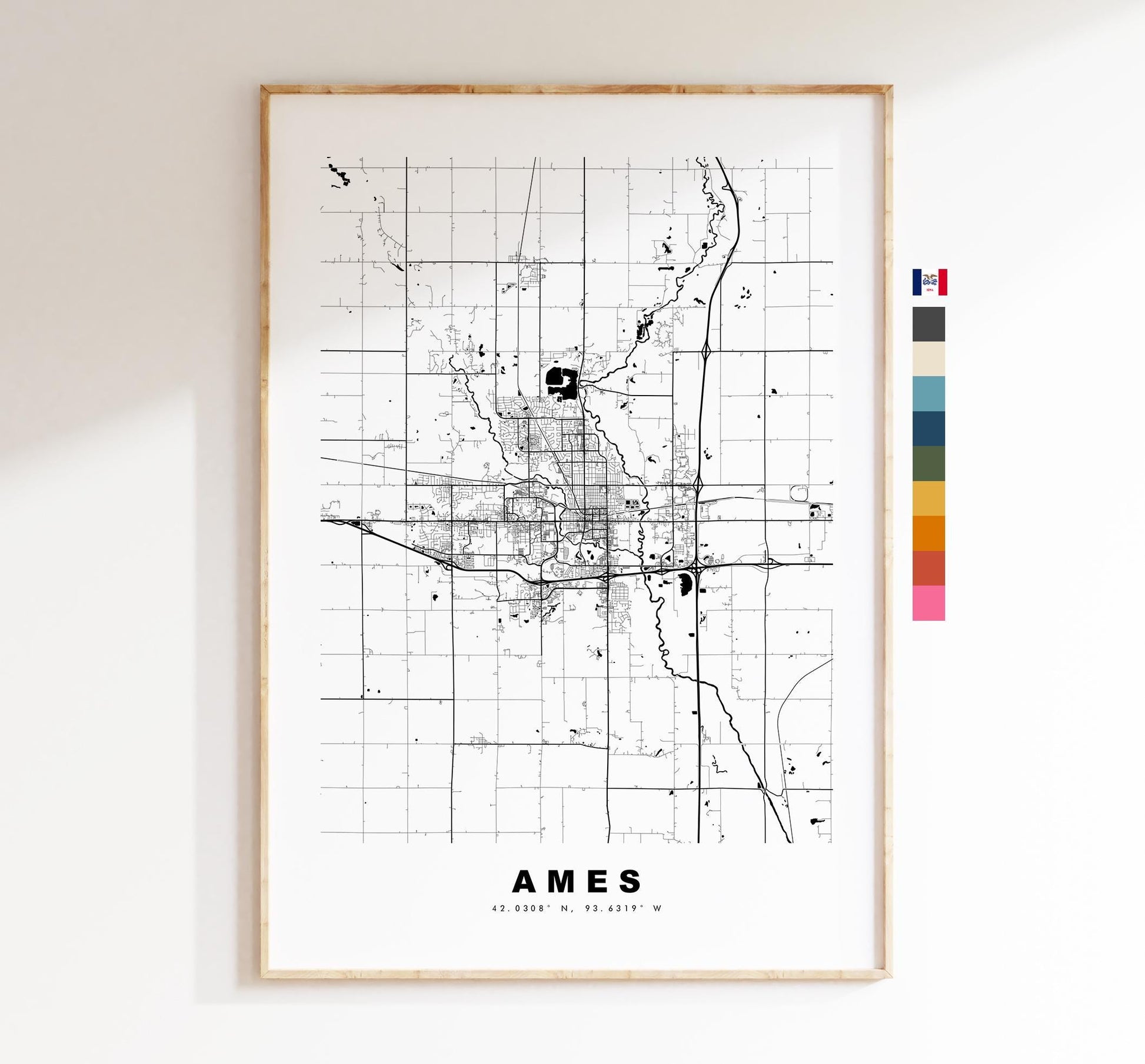Ames Map Print - City Map Poster - Map Art - USA City Maps - Ames Print - Ames Poster - Minimalist City Map - Iowa