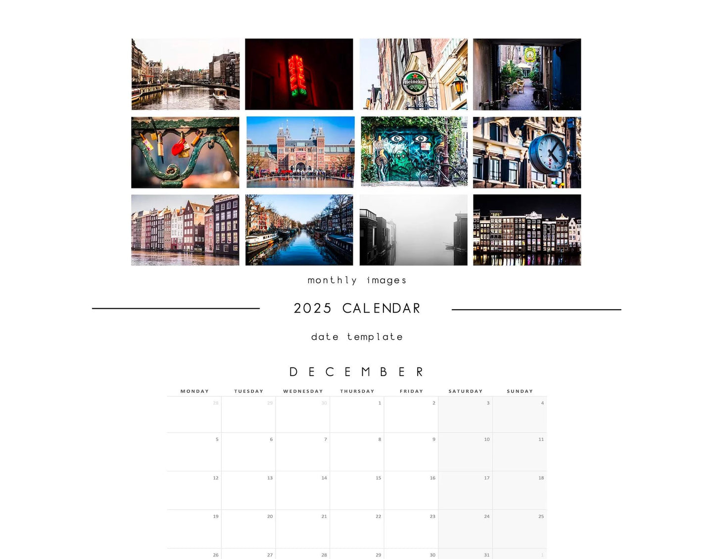 Amsterdam Calendar 2025 - A3 or A4 Wall Calendar - Amsterdam 2025 - 2025 Calendar - Planner - Photography Calendar - 2025 Planner