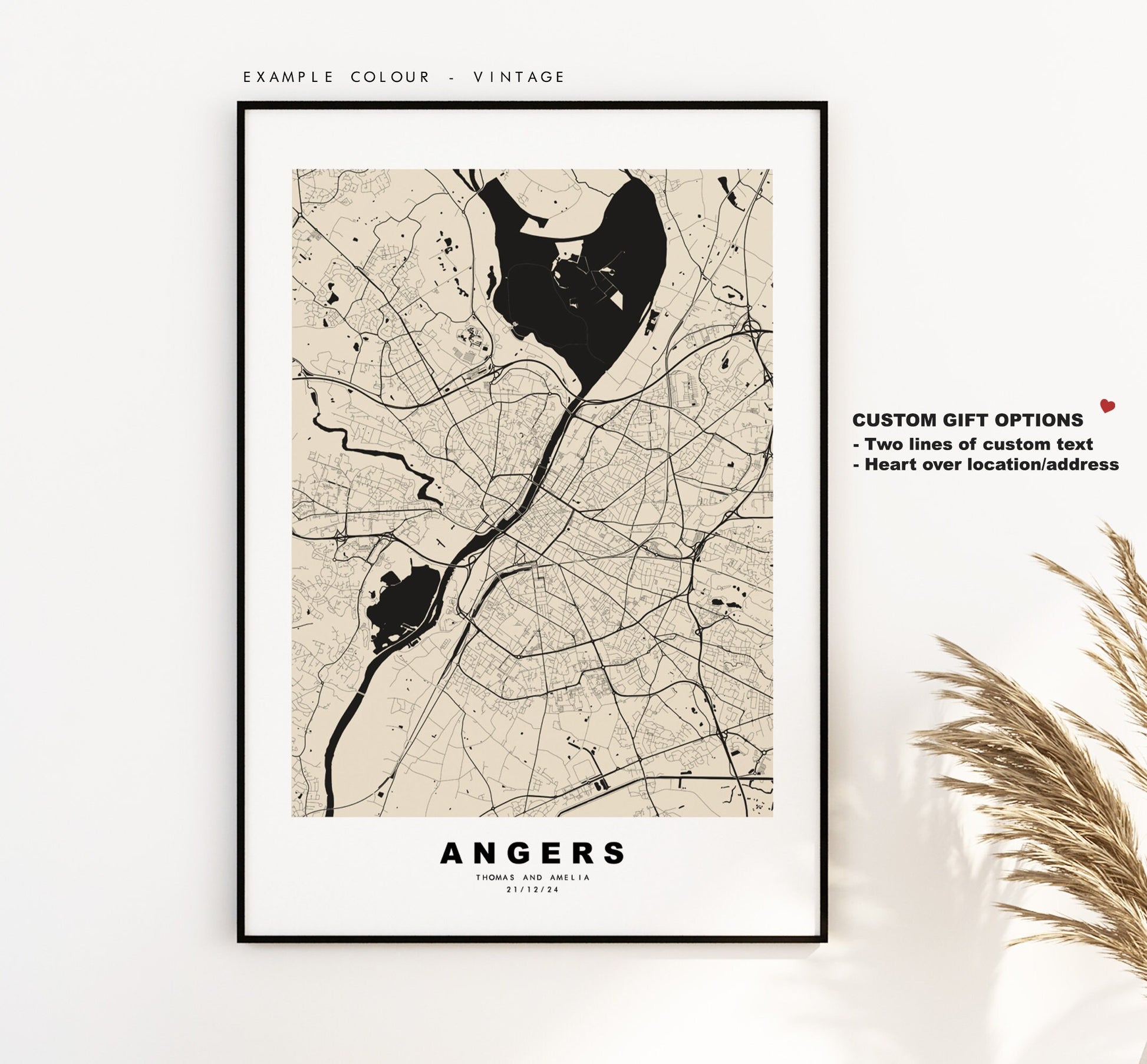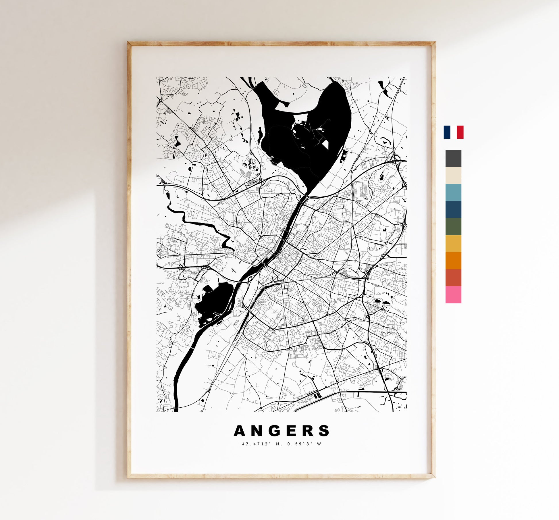 Angers Map Print - City Map Poster - Map Wall Art - France City Maps - Angers Print - Angers Poster - Minimalist City Map - France