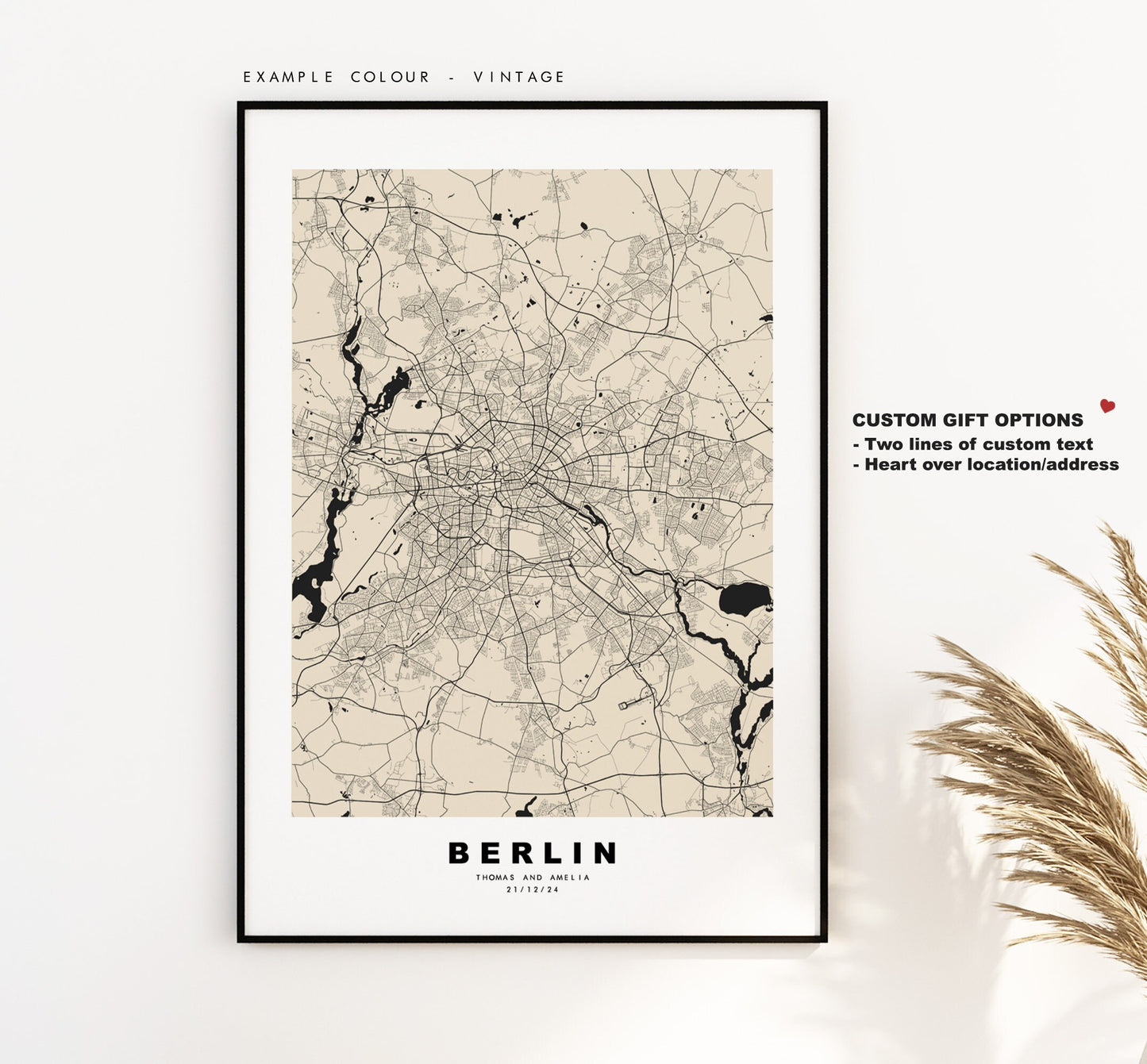 You can personalise this print by adding up to two lines of custom text beneath the city title, or by adding a heart over a location or address.