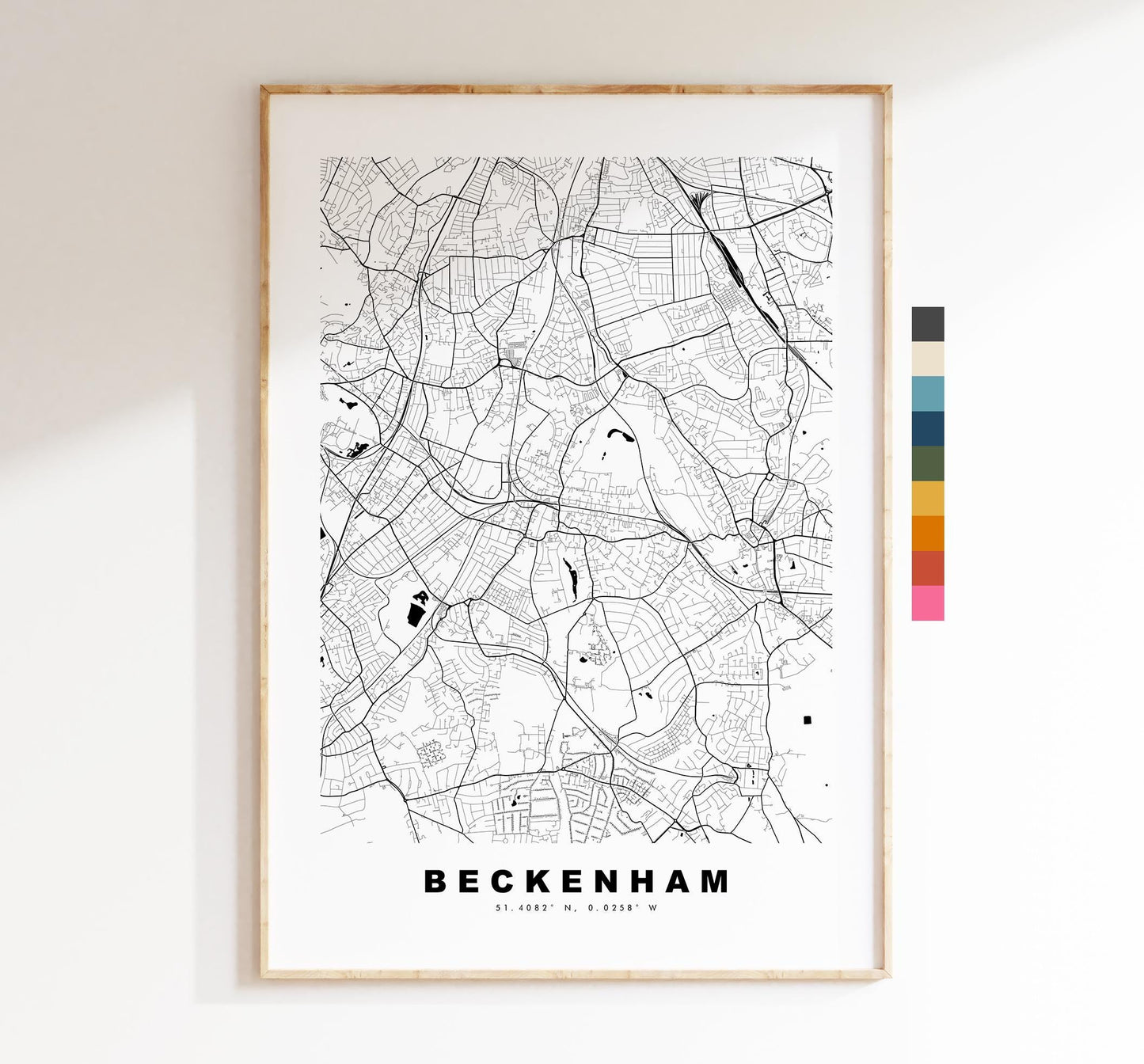 Beckenham Map Print - Minimalist City Map Poster - Map Art - UK - Beckenham Print - Beckenham, London - Different Colours Available