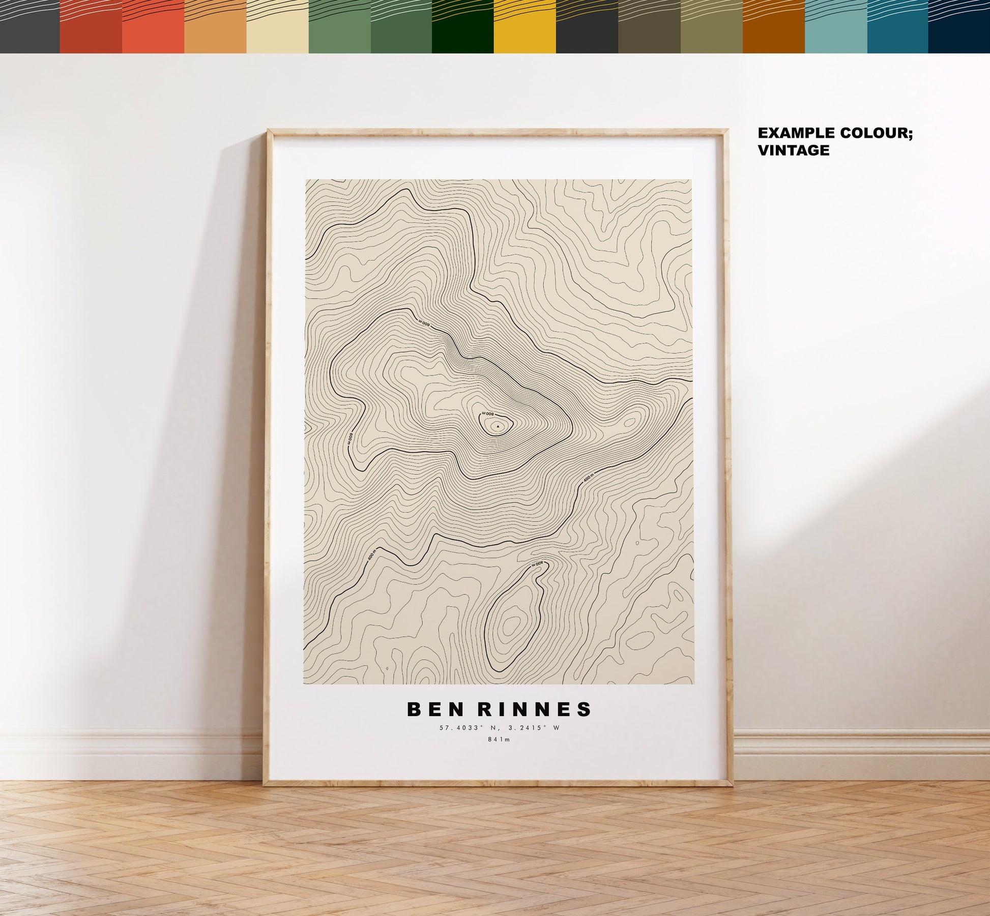 Ben Rinnes Print - Contour Map - Ben Rinnes Poster - Scotland - Topographic Map - Print - Wall Art - Ben Rinnes Map - Topography