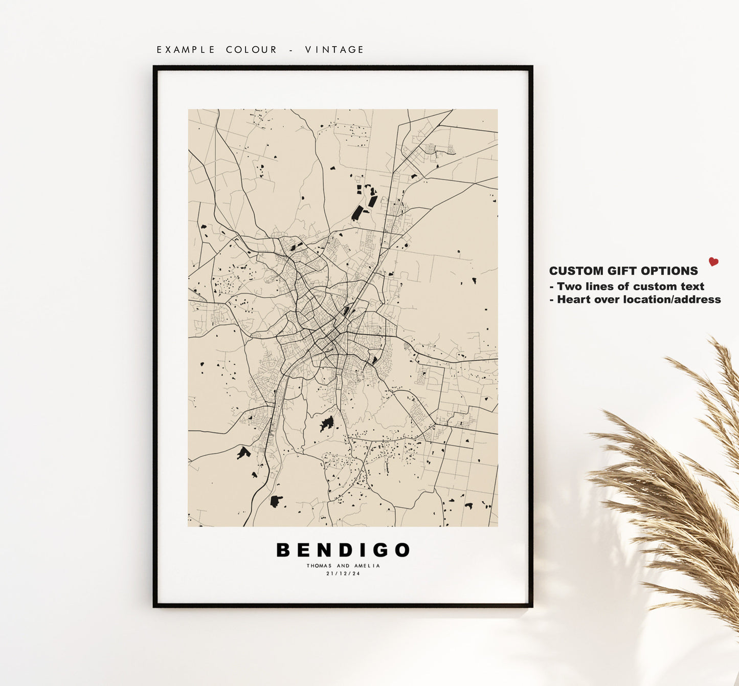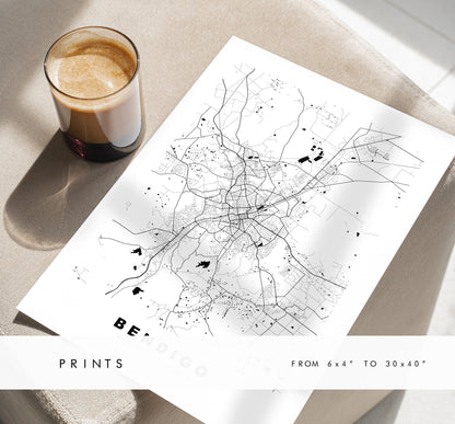 Bendigo Map Print - City Map Poster - Map Wall Art - Australia City Maps - Bendigo Print - Bendigo Poster - Minimalist City Map - Australia