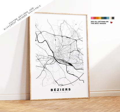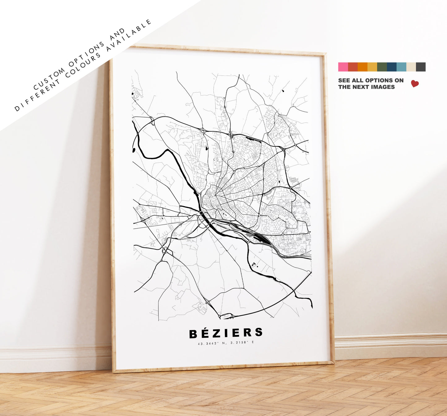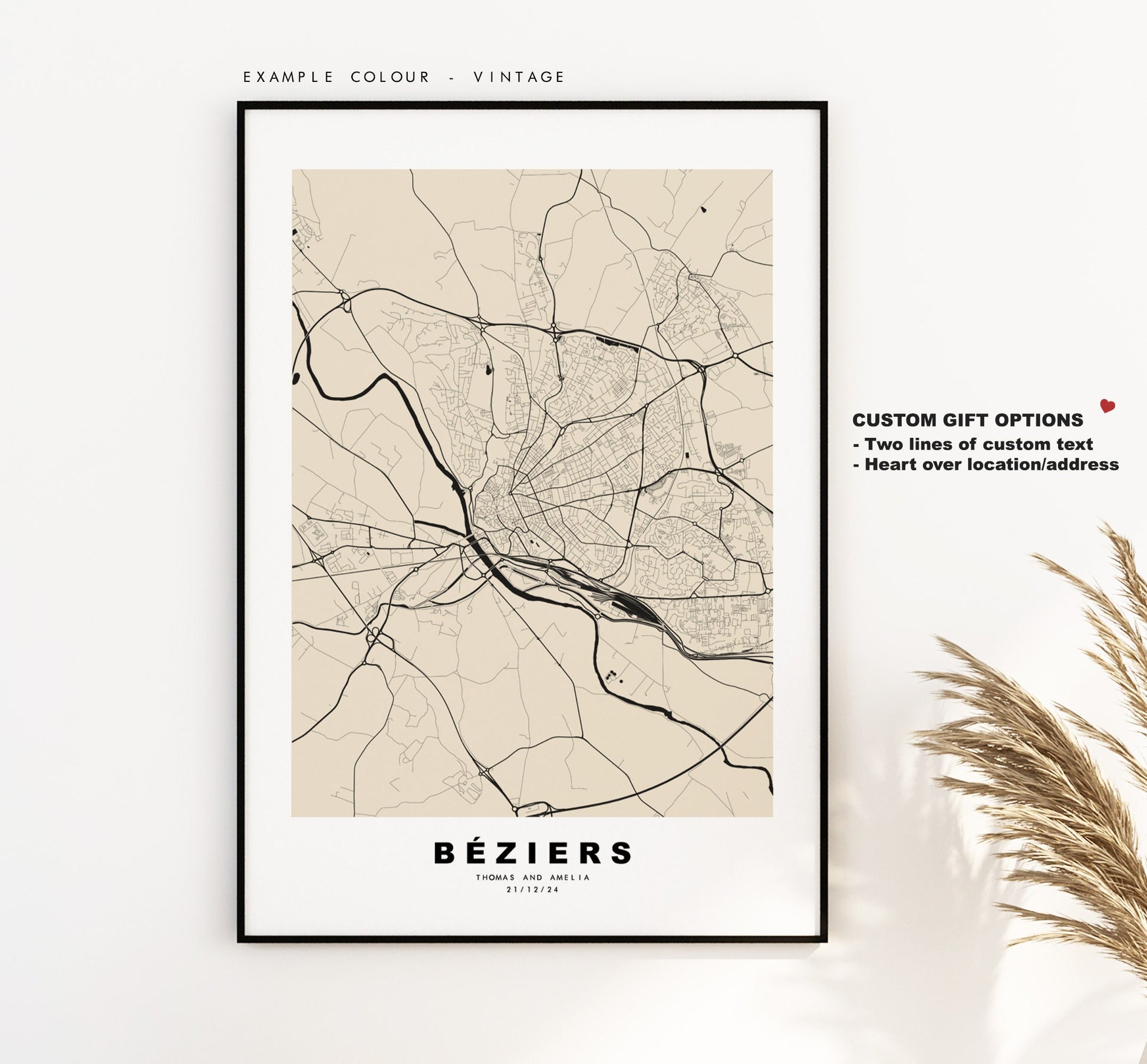 Beziers Map Print - City Map Poster - Map Wall Art - France City Maps - Beziers Print - Beziers Poster - Minimalist City Map - France