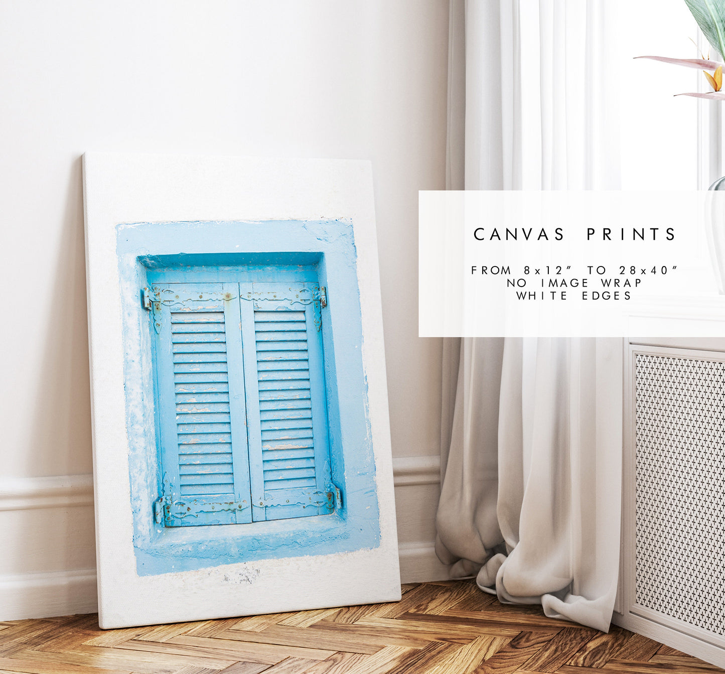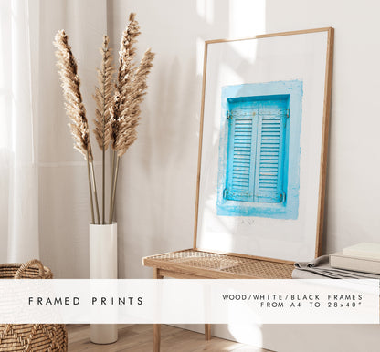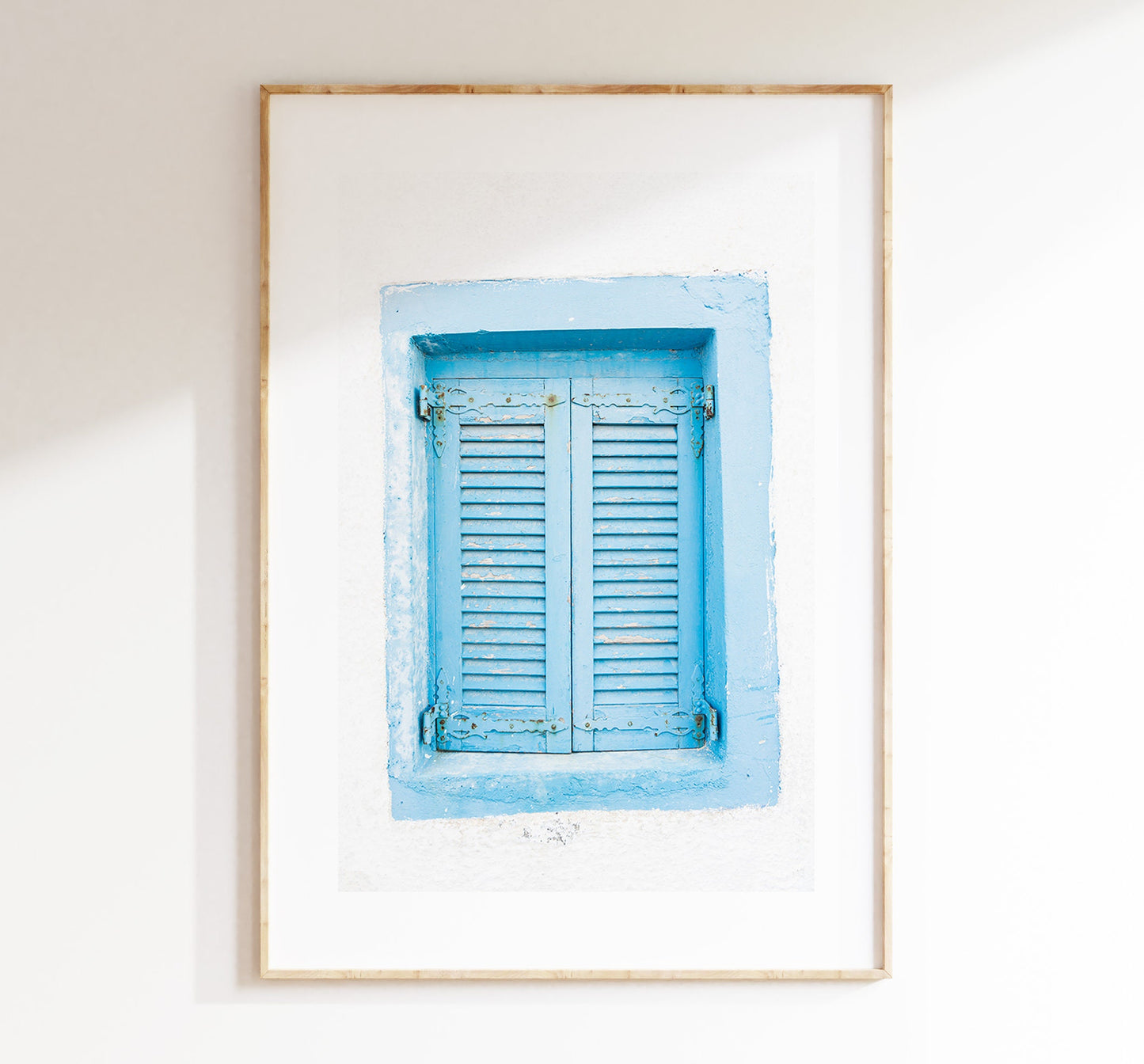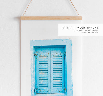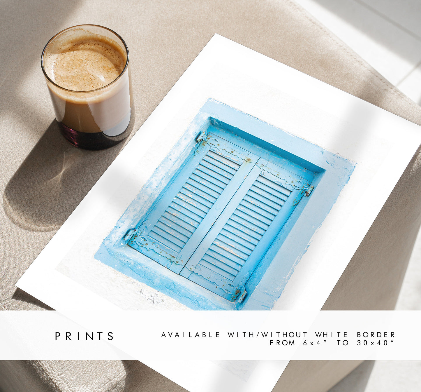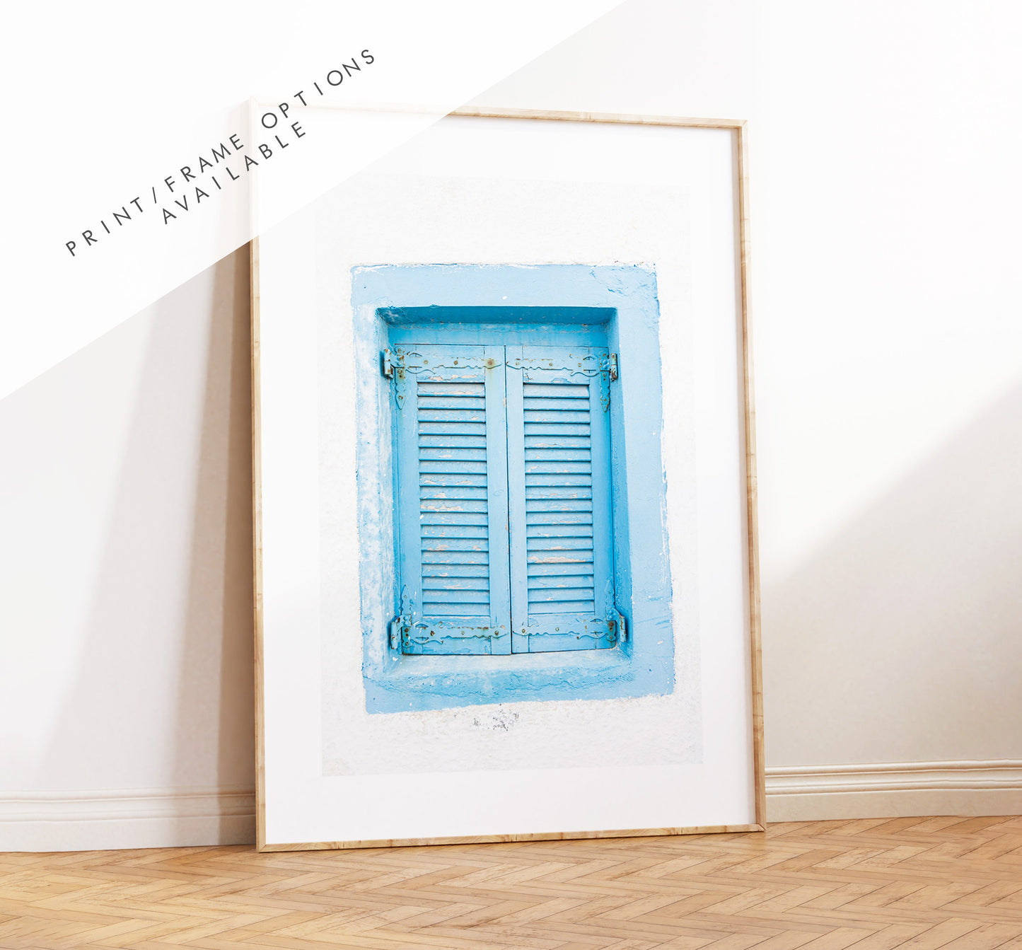 Blue Window Shutters Photography Print - Greece - Print - Poster - Santorini Photography - Greece Wall Art - Blue Wall Art - Santorini Blue