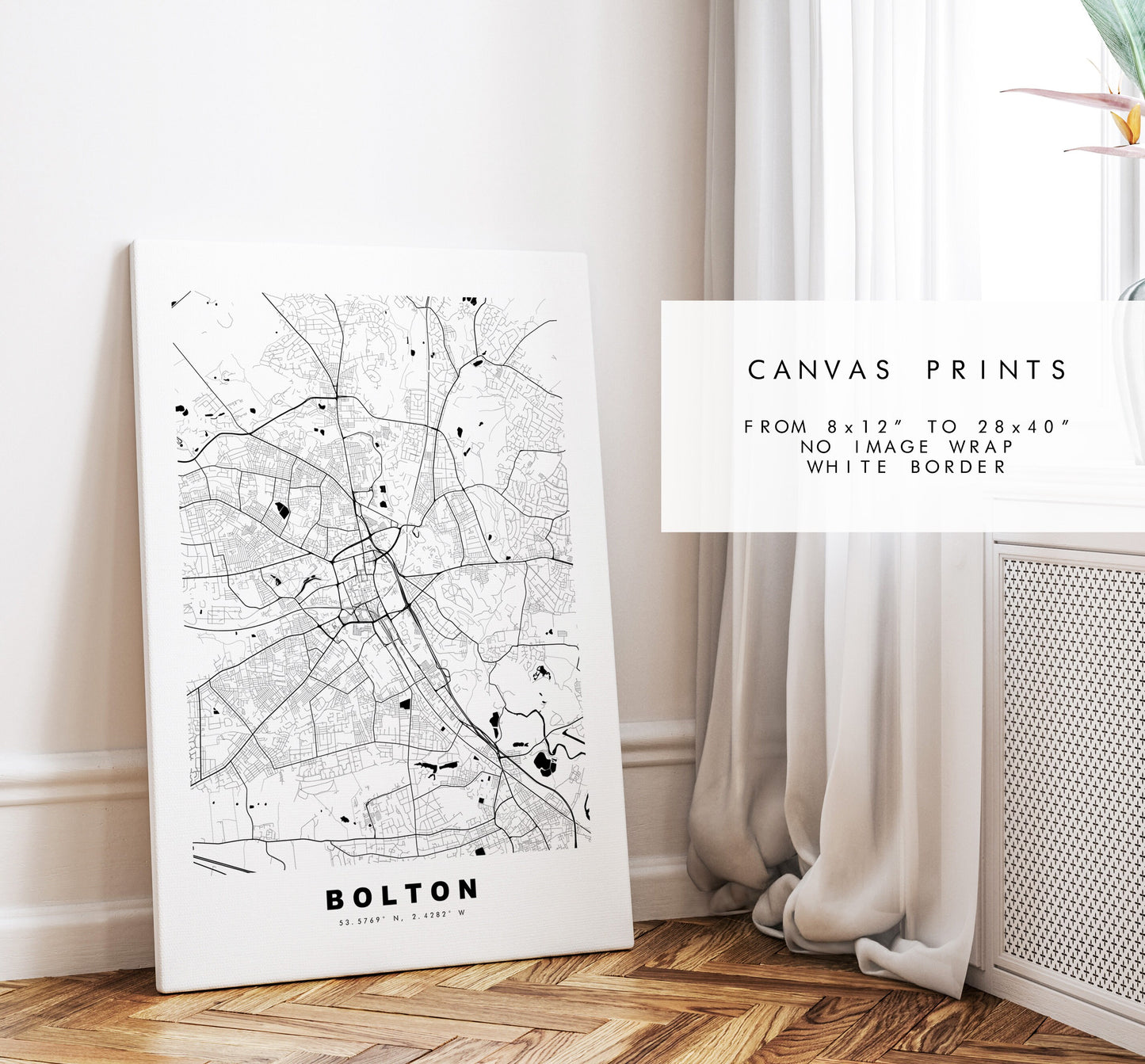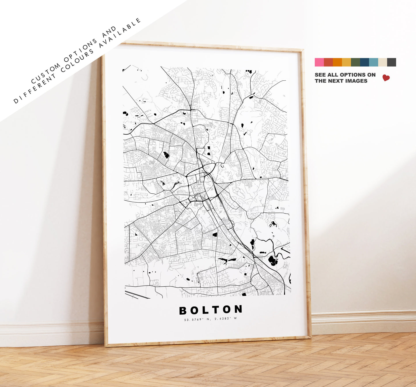 Bolton Map Print - Minimalist City Map Poster - Map Wall Art - UK - Bolton Print - Bolton Poster - Different Colours Available