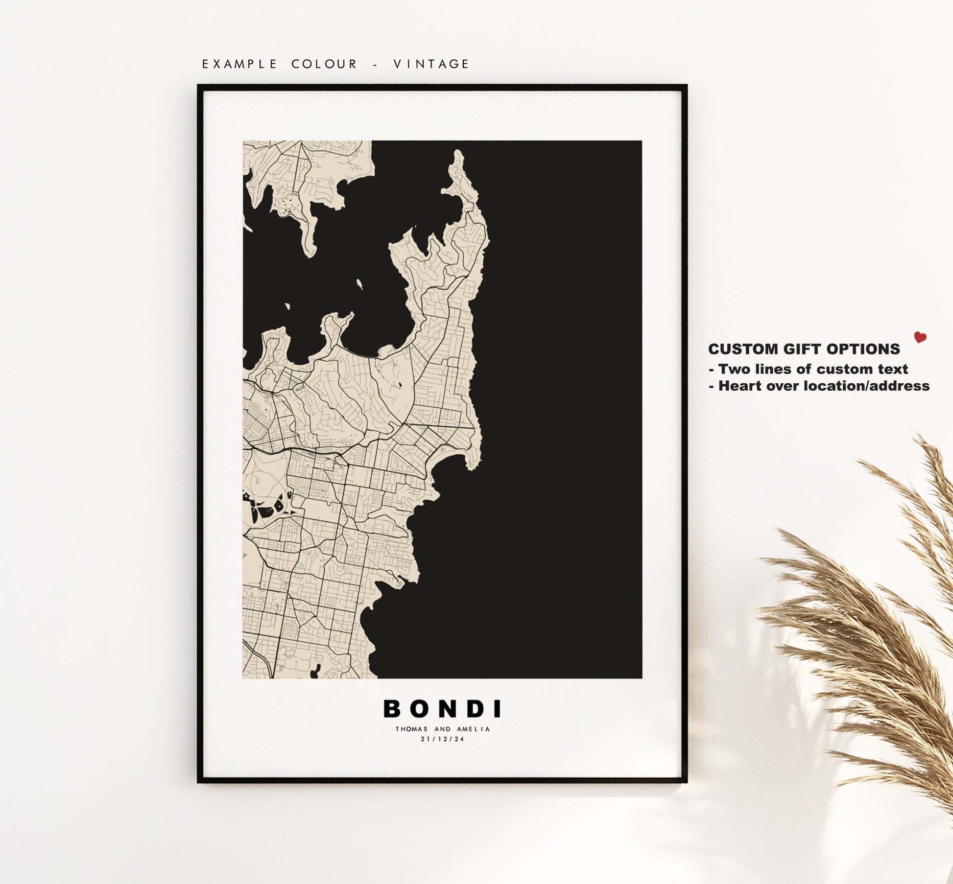 Bondi Map Print - City Map Poster - Map Wall Art - Australia City Maps - Bondi Print - Bondi Poster - Minimalist City Map - Australia