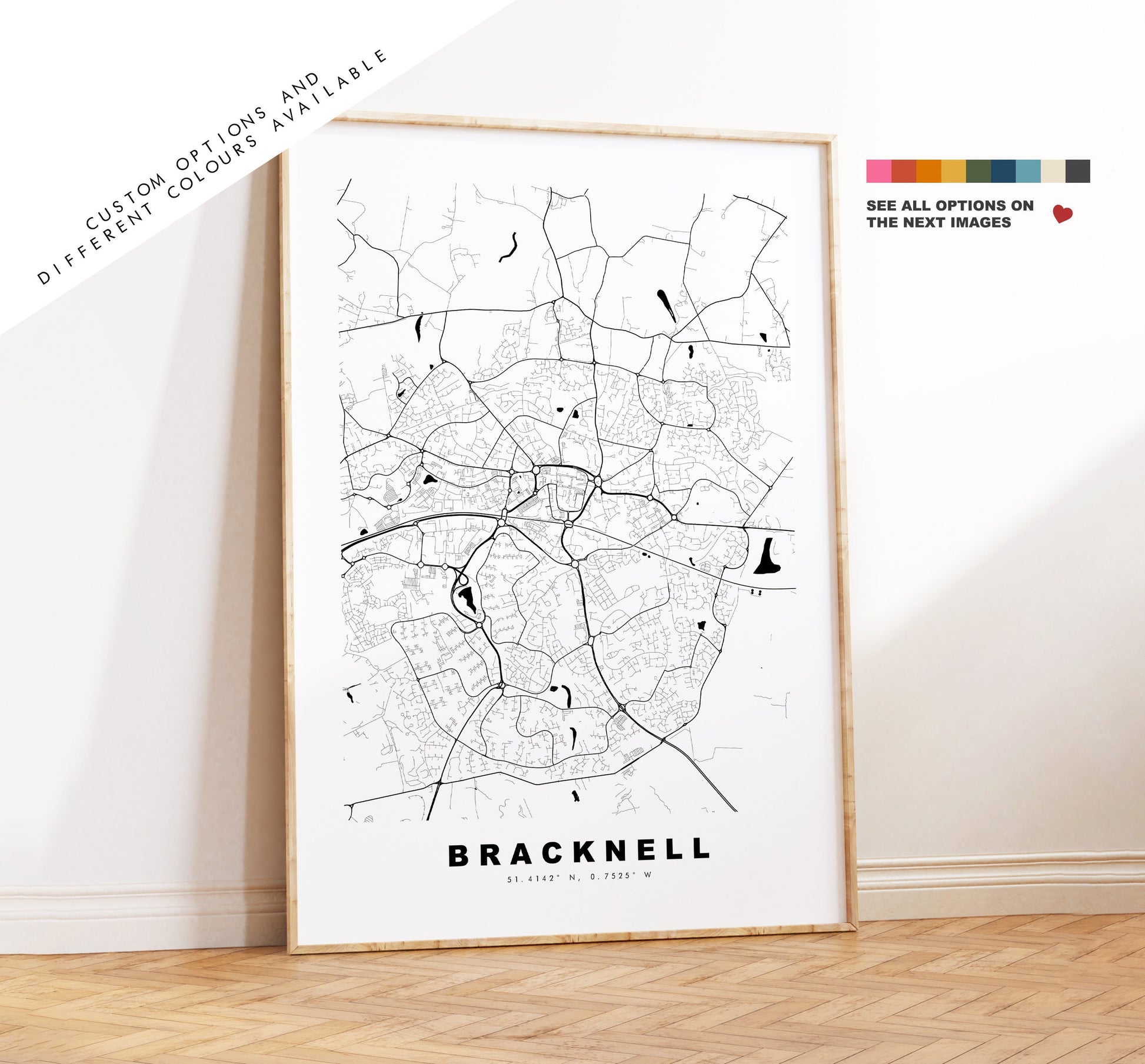 Bracknell Map Print - Minimalist City Map Poster - Map Wall Art - UK - Bracknell Print - Bracknell Poster - Different Colours Available