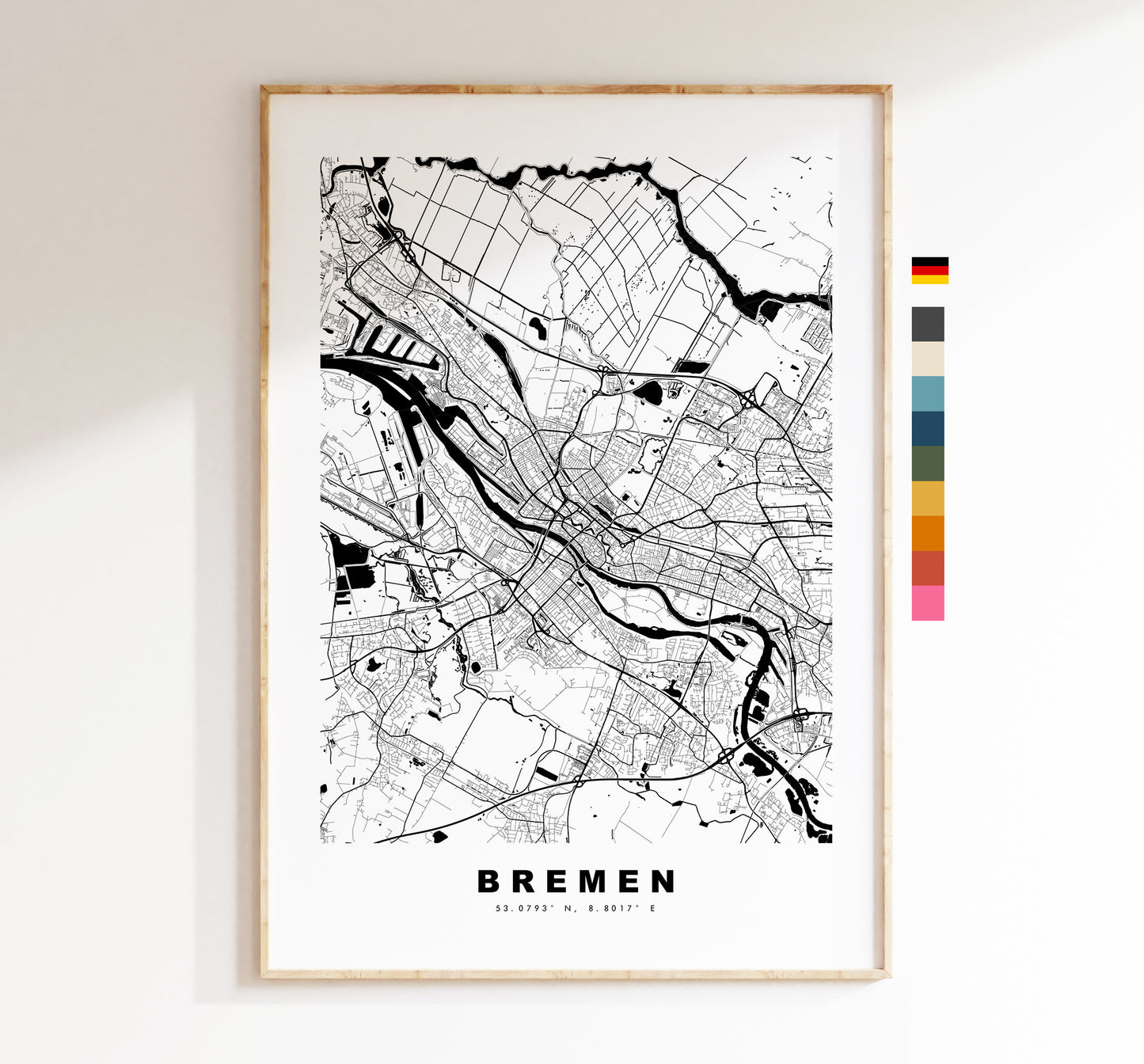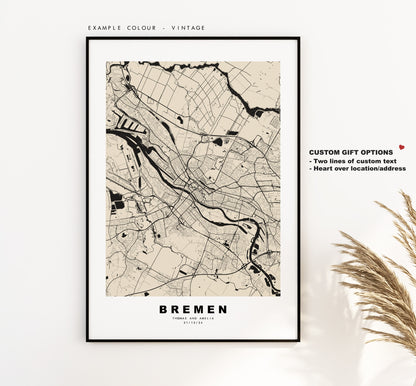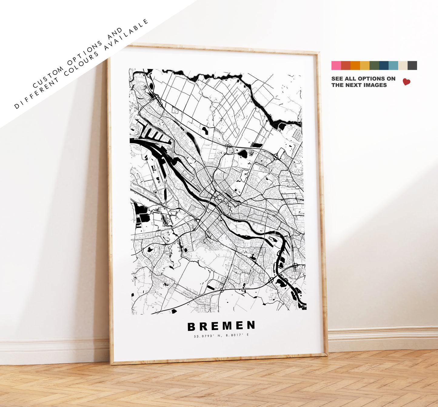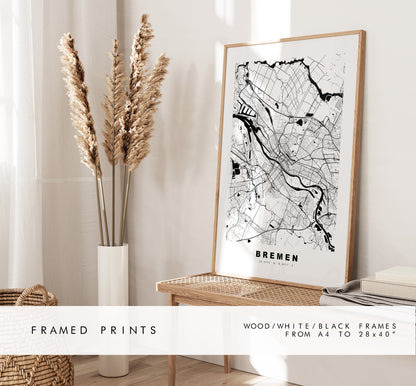 Bremen Map Print - City Map Poster - Map Wall Art - Germany City Maps - Bremen Print - Bremen Poster - Minimalist City Map - Germany